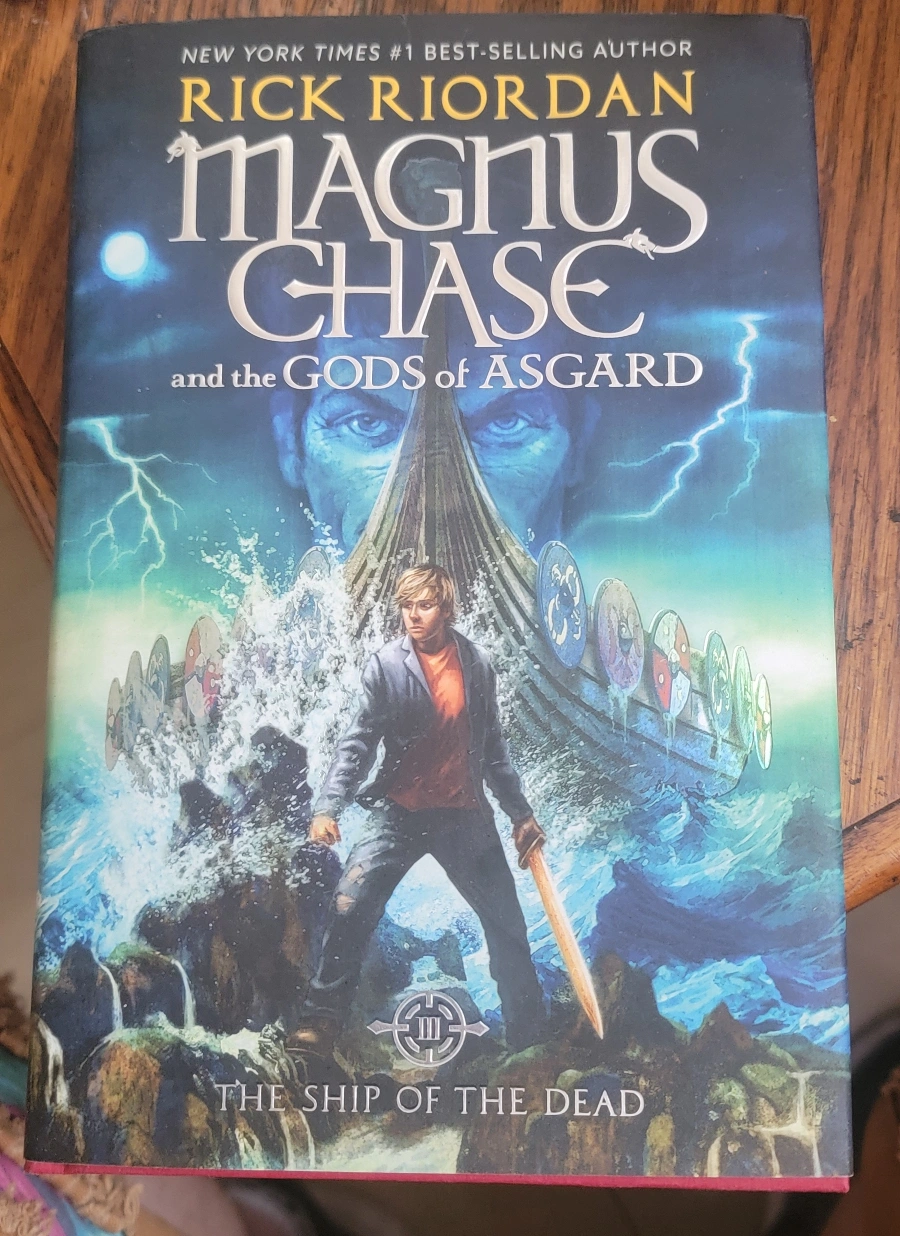 Selling the book Magnus Chase and the Gods of Asgard: The Ship of the Dead by Rick Riordan. It's part of the Magnus Chase series. A great read for anyone interested in Norse mythology!