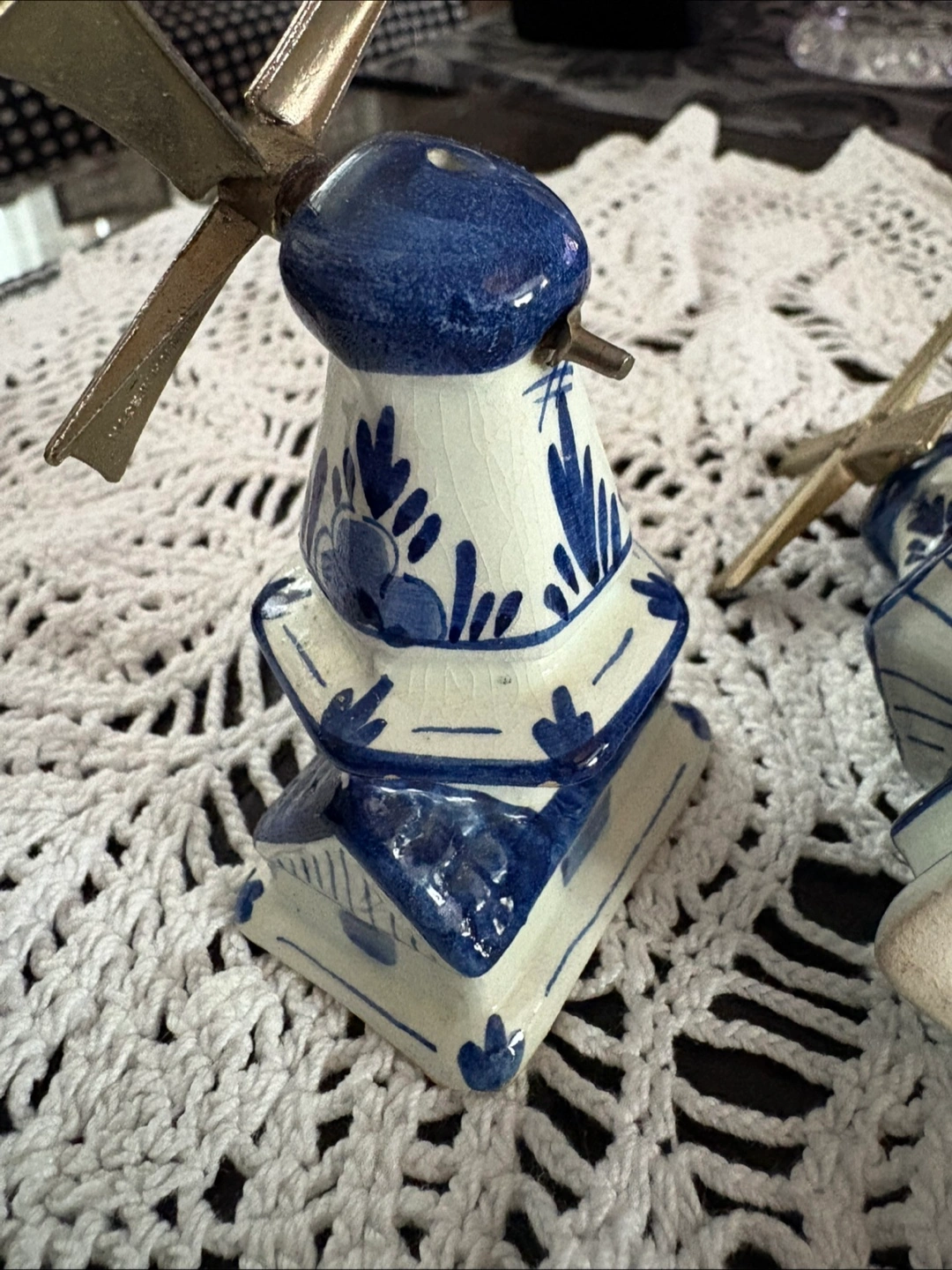 Selling a pair of charming Delfts Holland windmill salt and pepper shakers! These little windmills are decorated in the classic blue and white Delft style. Windmills move! EUC