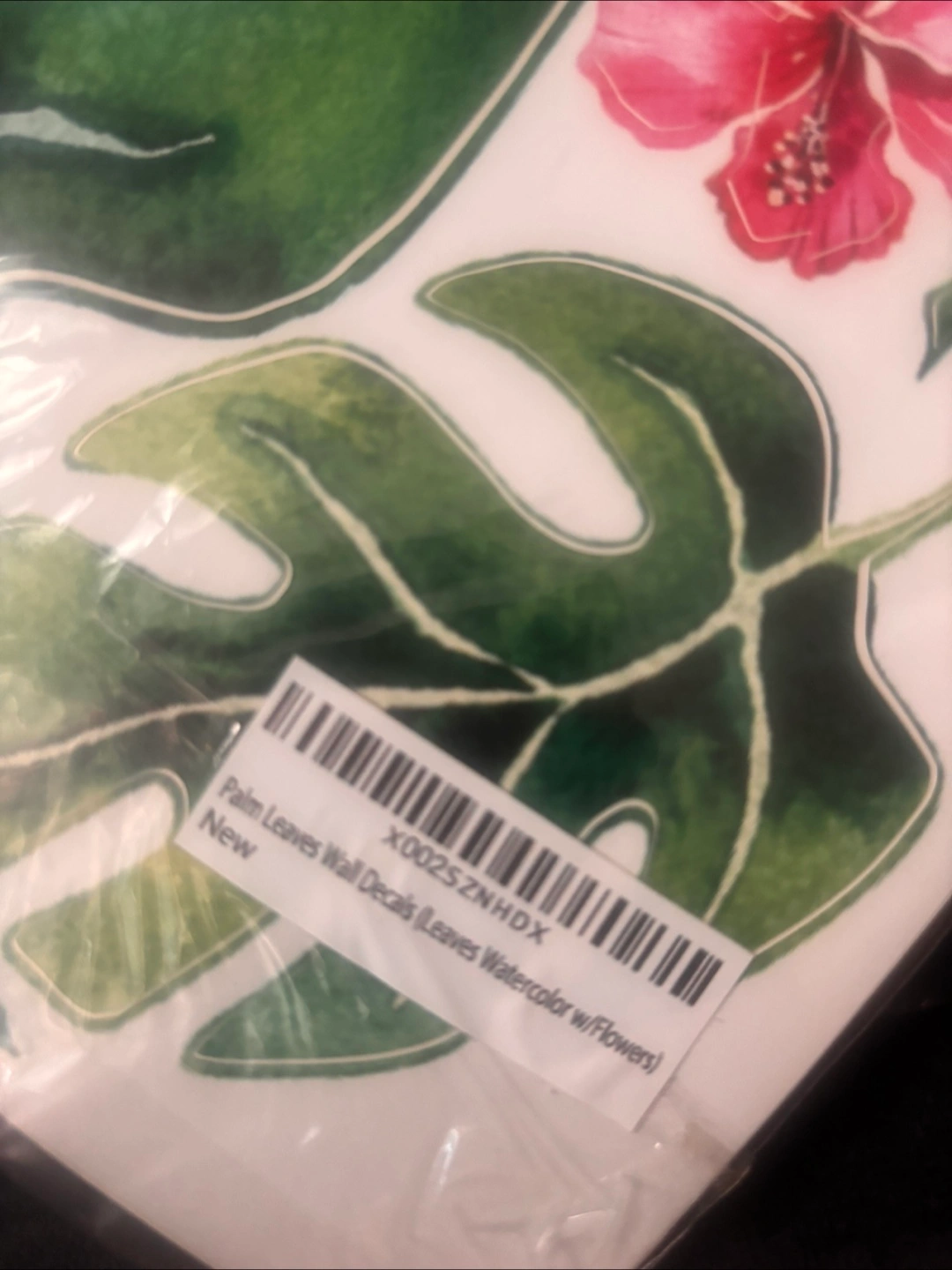 I'm selling a set of new palm leaves wall decals featuring a watercolor design with flowers. These Design Stickers are easy to apply - just peel and stick! They are removable and washable, perfect for refreshing your interior in minutes. Suitable for painted walls, tile, doors, furniture, appliances, windows, and bathrooms. Each set contains 2 sheets