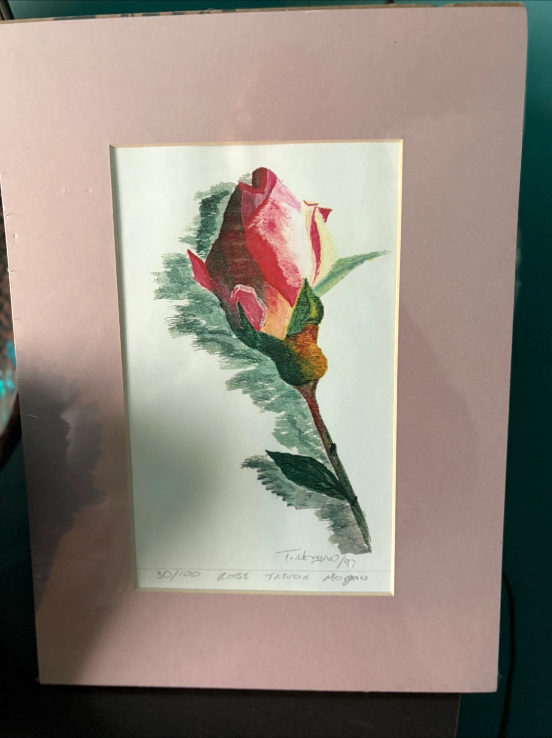 Framed rose print by local artist Trevor Morgan. This is number 30 out of 100 prints. The print is signed and dated '97.