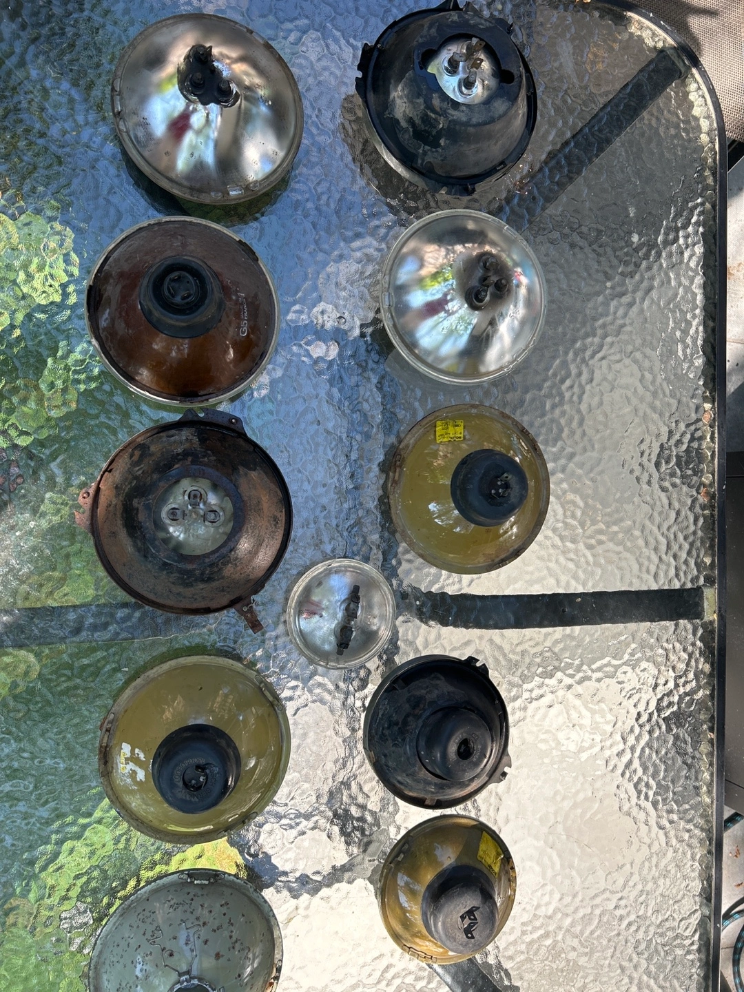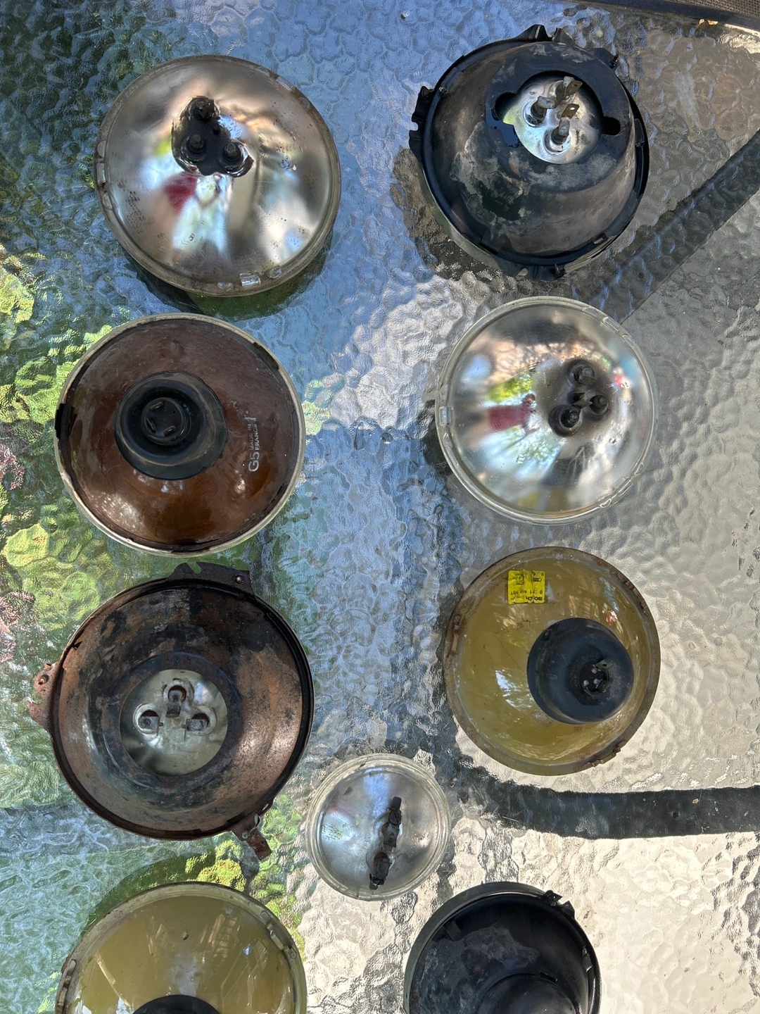 I have a collection of vintage used car headlights for sale. They are in varying conditions, as you can see in the photos. Great for a project or replacement parts! Please take a look at the pictures for details