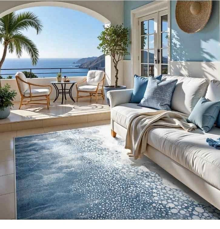 97Modern Abstract 5x7ft Area Rug, Washable Rug. Non Slip Soft Rug, Ultra Thin Blue Ombre Floor Carpet for Home Office Dining Room bedroom, Blue/white.