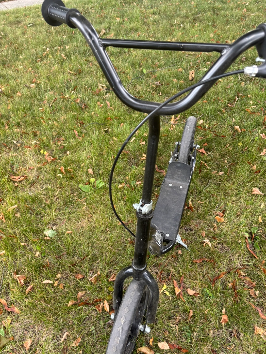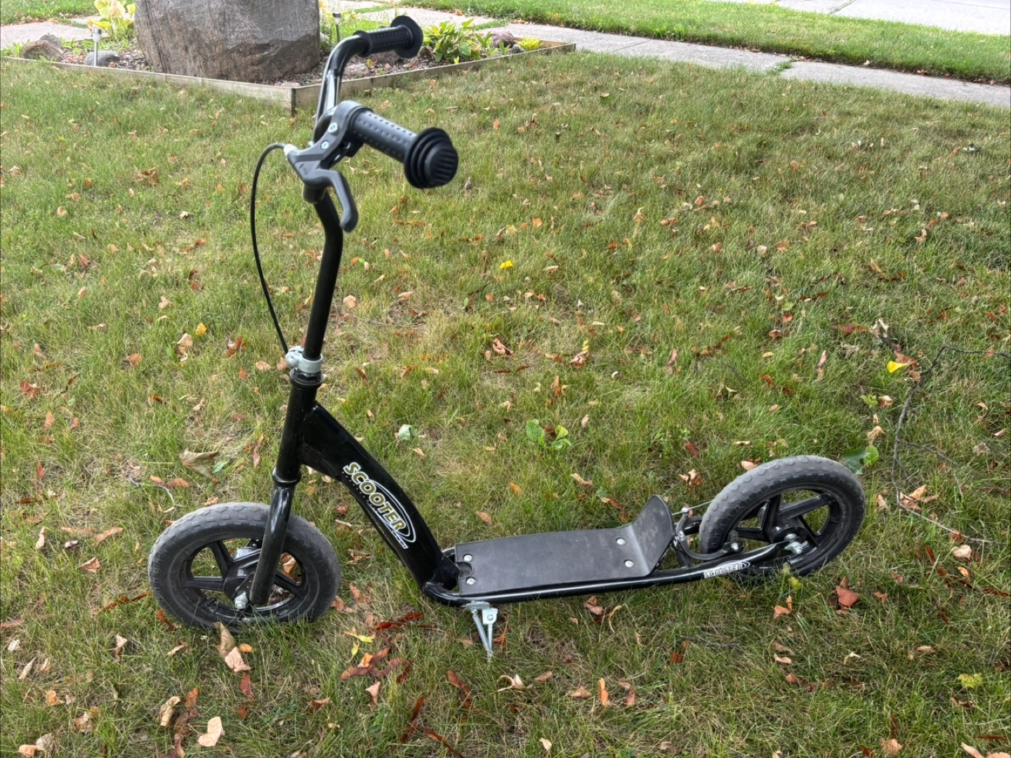 I'm selling a used black kids scooter. It has some wear and tear, but it's still in good working condition. Perfect for getting around town!