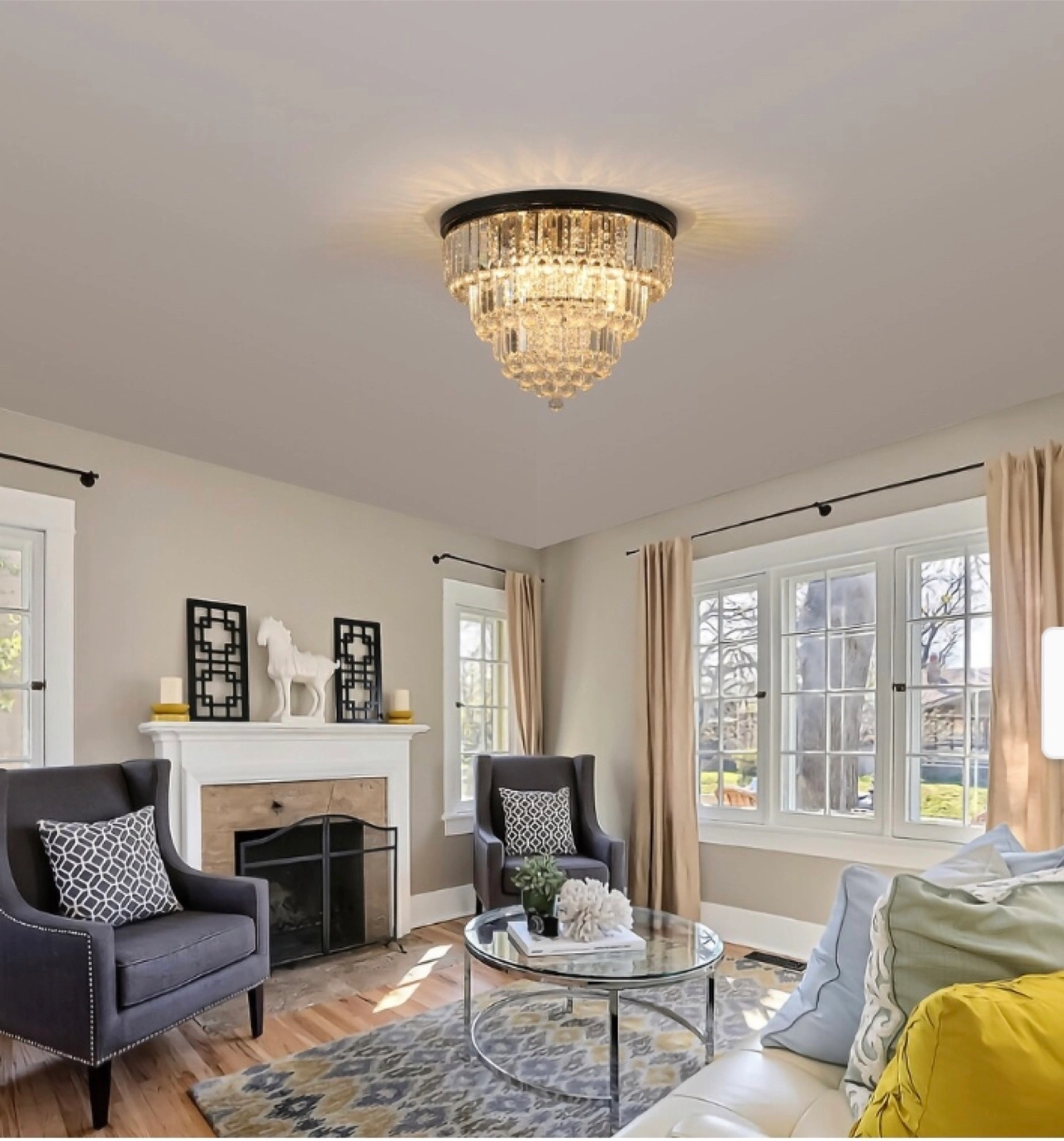Add a touch of elegance to your home with this stunning crystal chandelier! It features a beautiful 4-tier structure design made with clear K9 crystal and a durable metal frame painted in a superior finish. This exquisite and shining chandelier will definitely brighten up any room!