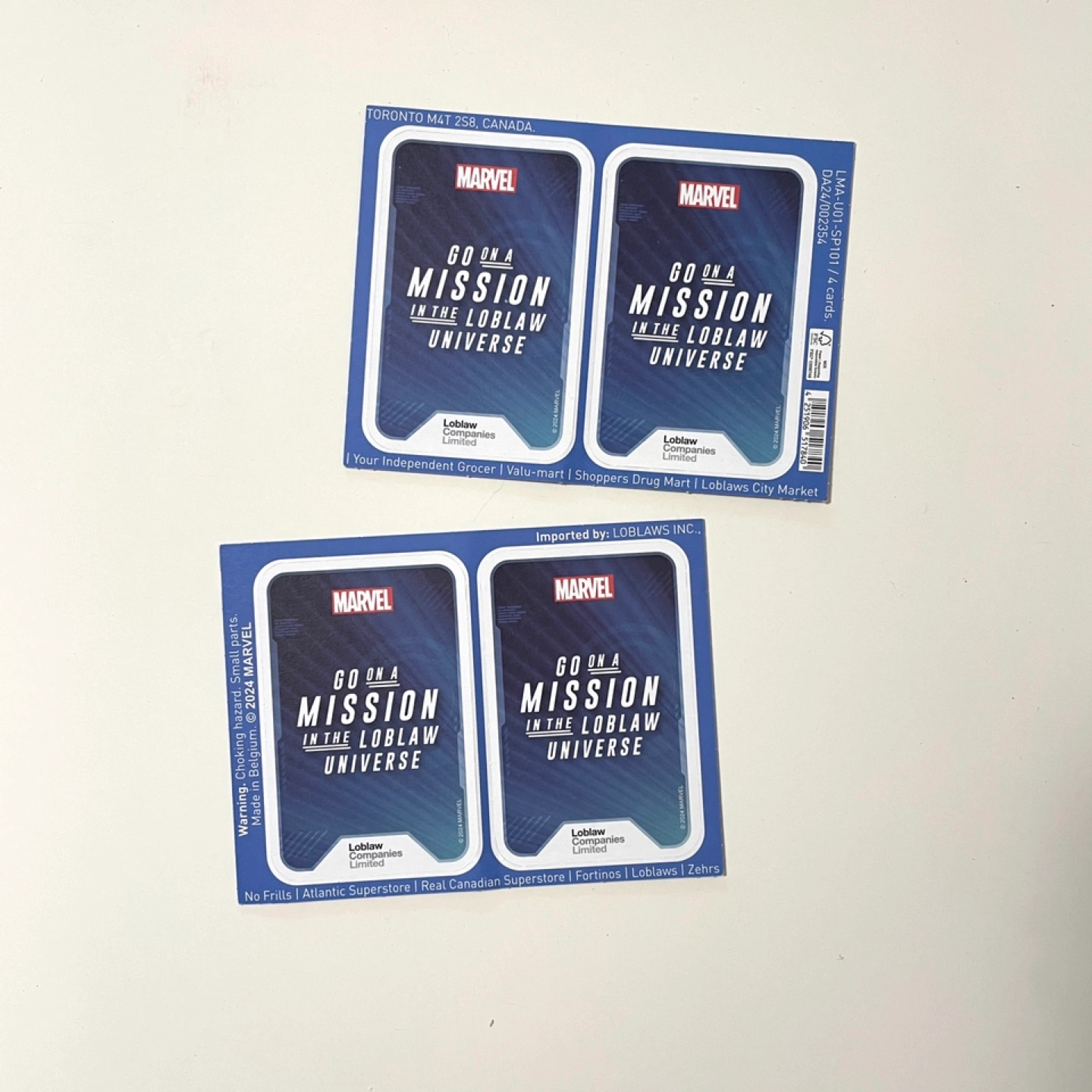 Buy & SellMarvel cardsMarvel cardsFreeMarvel Go on a Mission in the Loblaw Universe cards from Loblaws. Made in Belgium.ConditionNewWHERE TO MEETBay & WellesleyView MapSELLERCacaBay Street Corridor93399 reviews1 chats·0 favorites·14 views