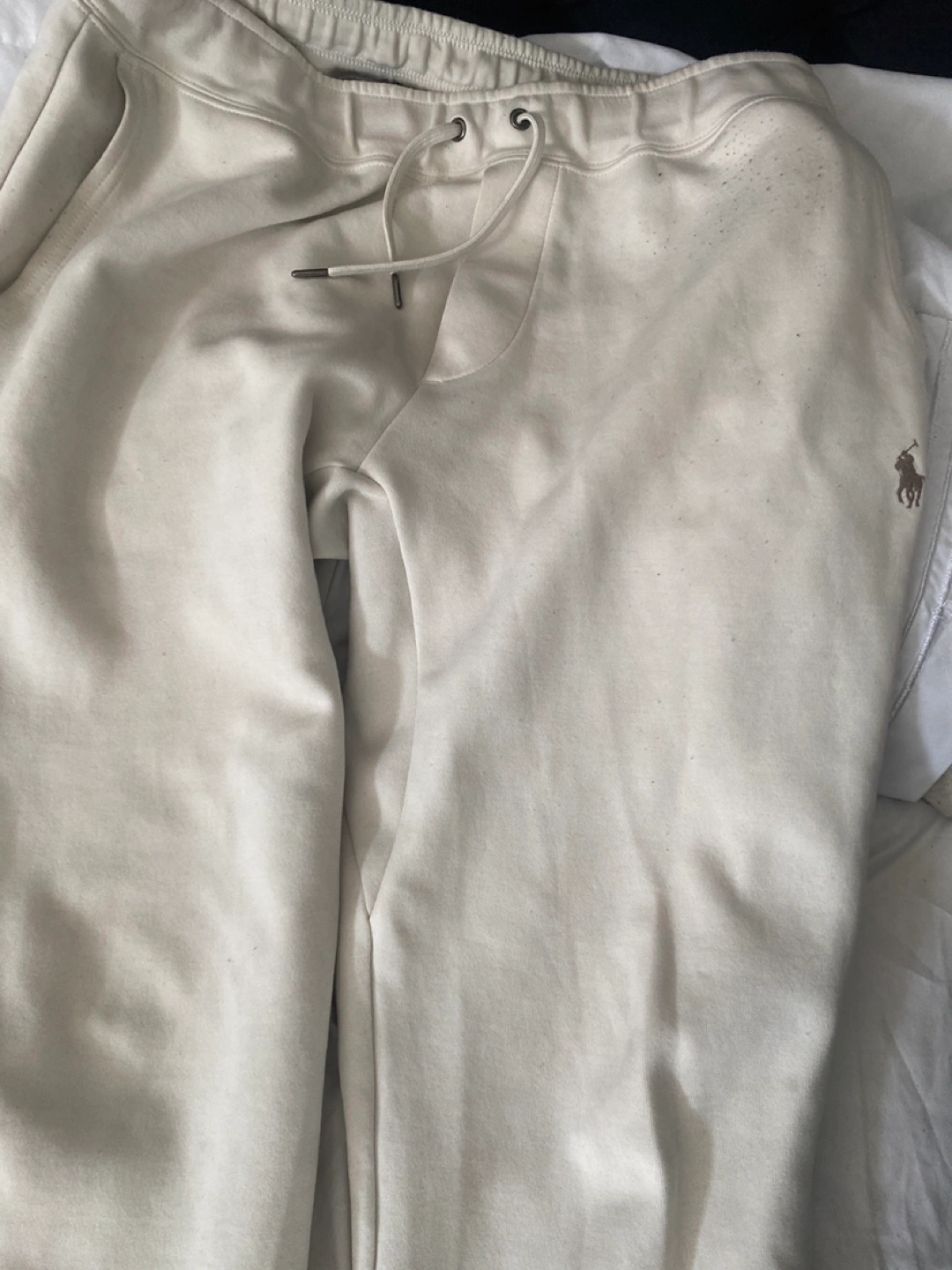 5Selling a pair of Ralph Lauren sweatpants in size medium. They're a comfy, neutral colour, perfect for lounging around the house or running errands. They do show some signs of wear, but still have plenty of life left!