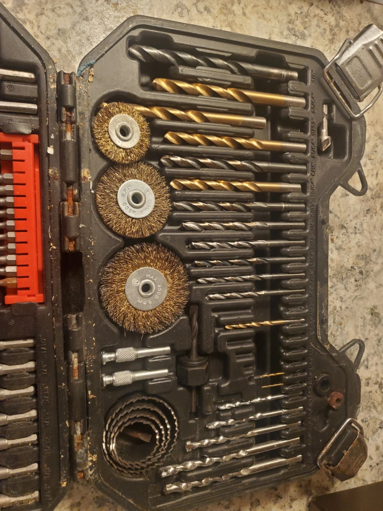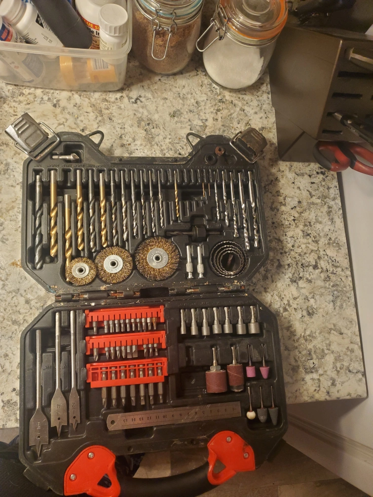 Selling a King Canada drill and bit accessory kit. Old, battered, missing a few pieces but still good.
