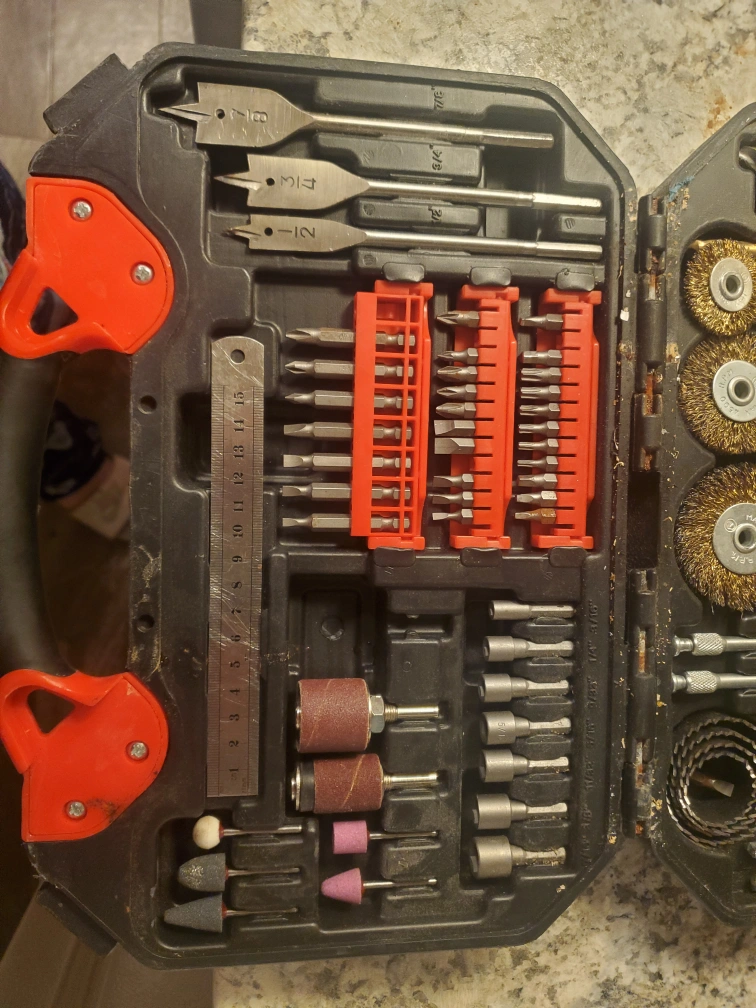 Selling a King Canada drill and bit accessory kit. Old, battered, missing a few pieces but still good.