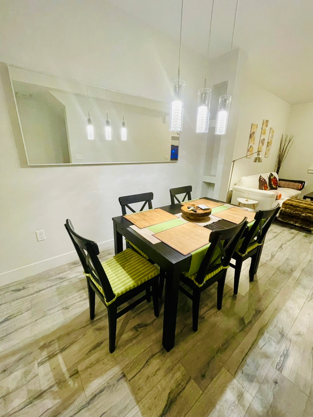 86Selling a brown dining table with chairs. It's a great set for family dinners or entertaining friends. The table is a good size and the chairs are comfortable. Perfect for any dining room!