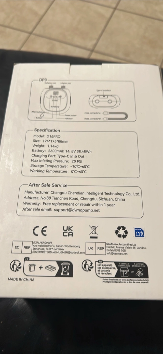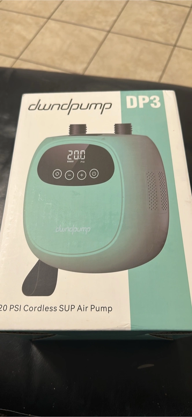 Selling a brand new dWndpump DP3 20 PSI cordless SUP air pump! It comes in its original box and is ready to inflate your paddleboards or other inflatables with ease.