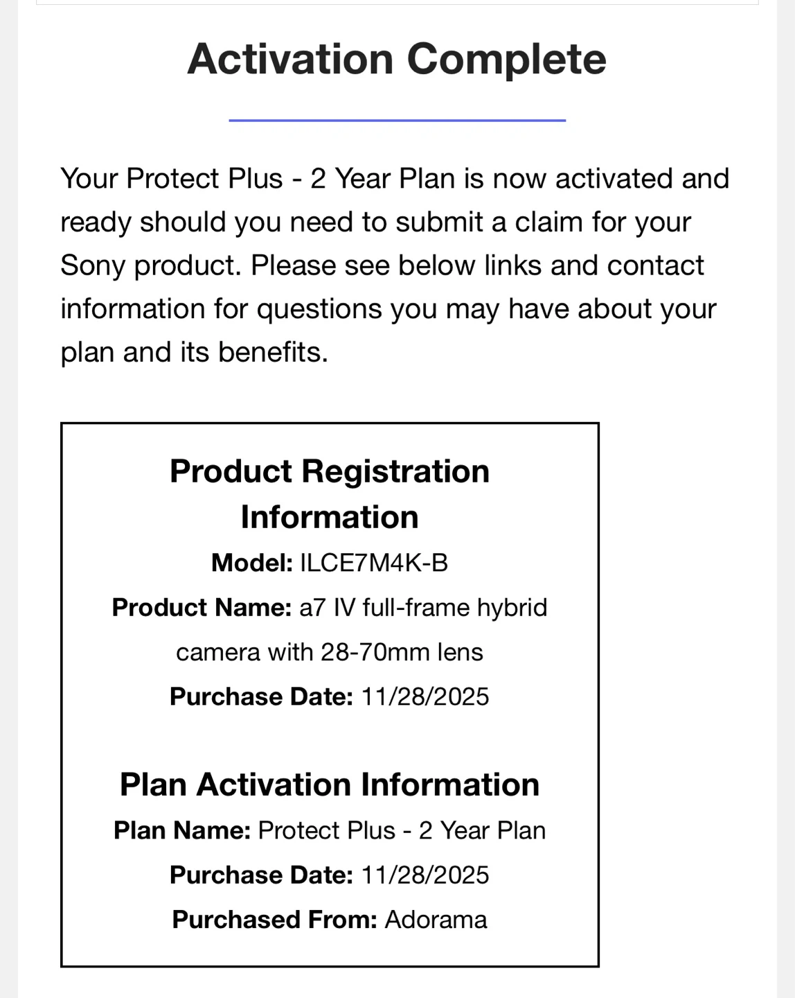 2 Years of Sony/Adorama Warranty Plus ≈ $200