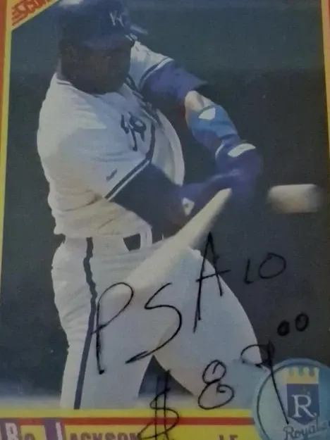 This is a 1989 Score Bo Jackson baseball Features the Kansas City Royals logo. A great collectible for any baseball fan!