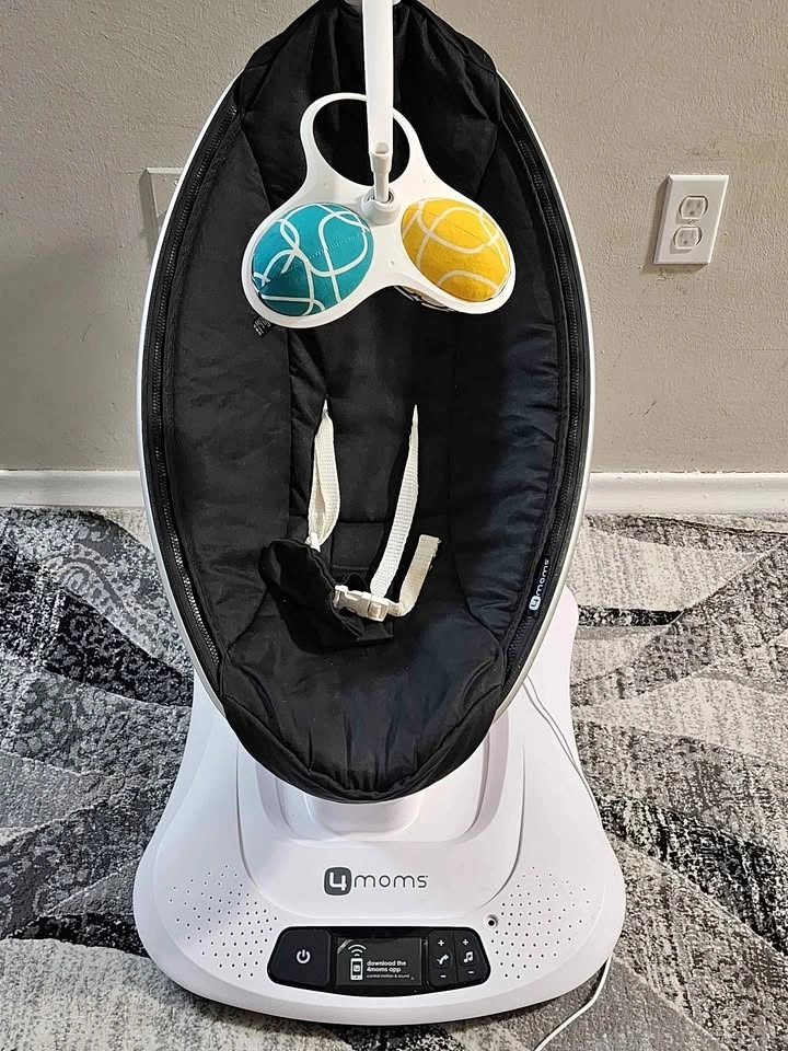 This 4moms RockaRoo infant rocker is designed to entertain your little one. It features a compact design and multiple motion settings. It's perfect for keeping your baby happy and engaged. Everything is in excellent condition, except the toy bar 1 ball is missing.