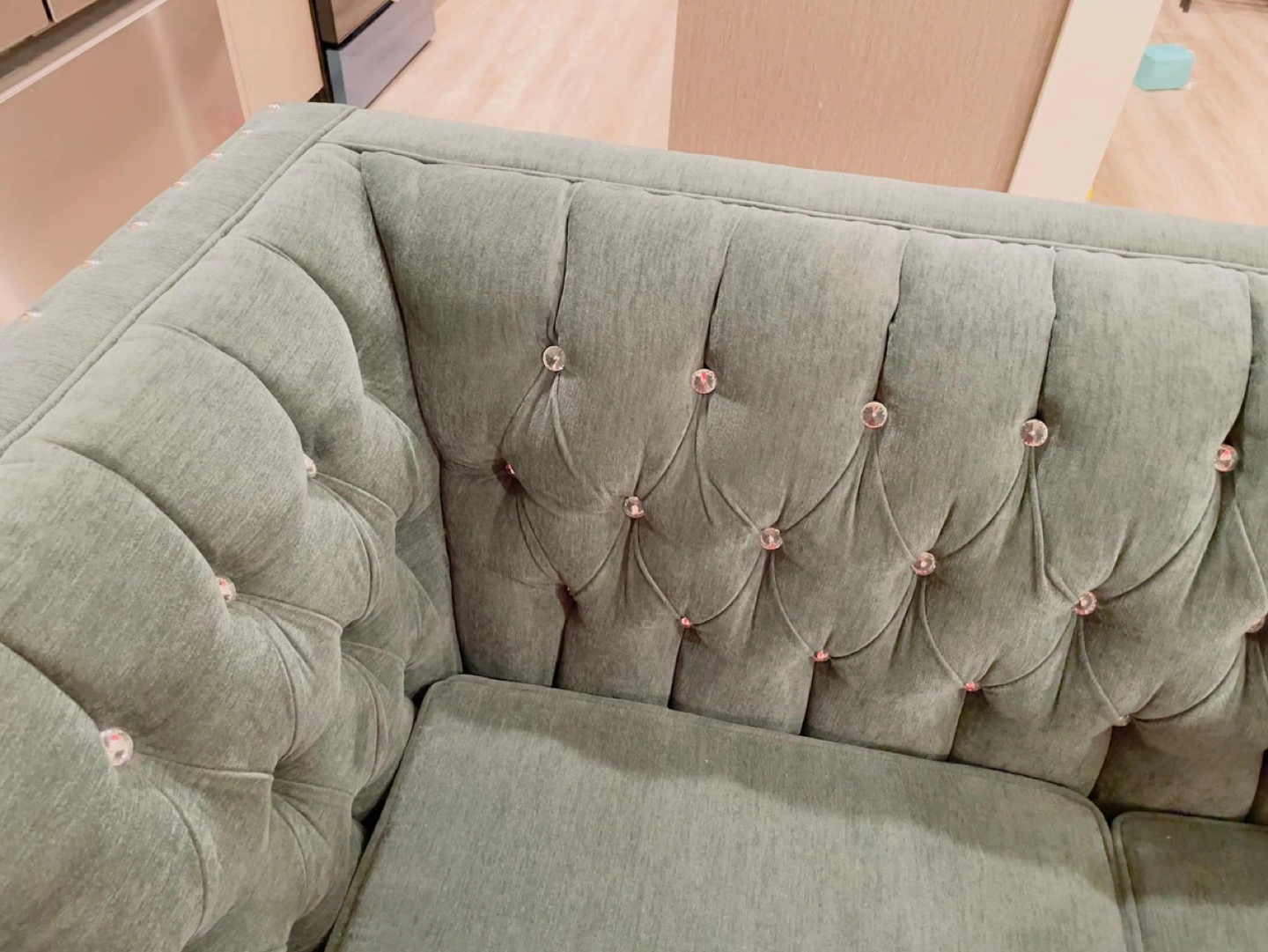 Elegant Teal Velvet Loveseat with Crystal Buttons