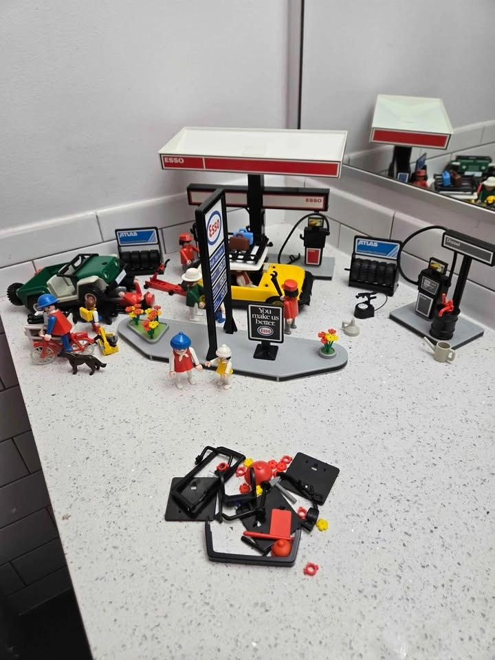 This is an original 1984 Playmobil ESSO Gas Station (Set 3434) in great vintage condition.