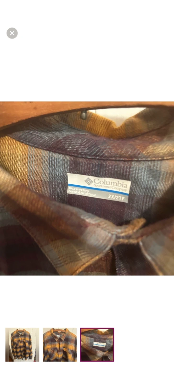 Columbia brand. Long sleeve button up flannel. Brown, orange & blue floral plaid. Size men’s 2x. Brand new condition