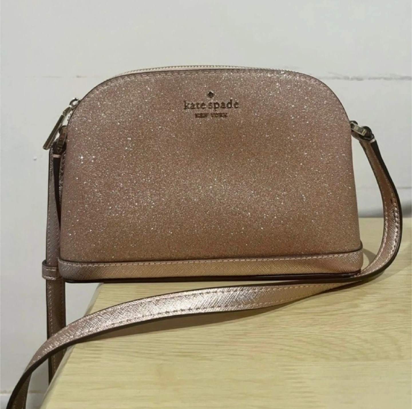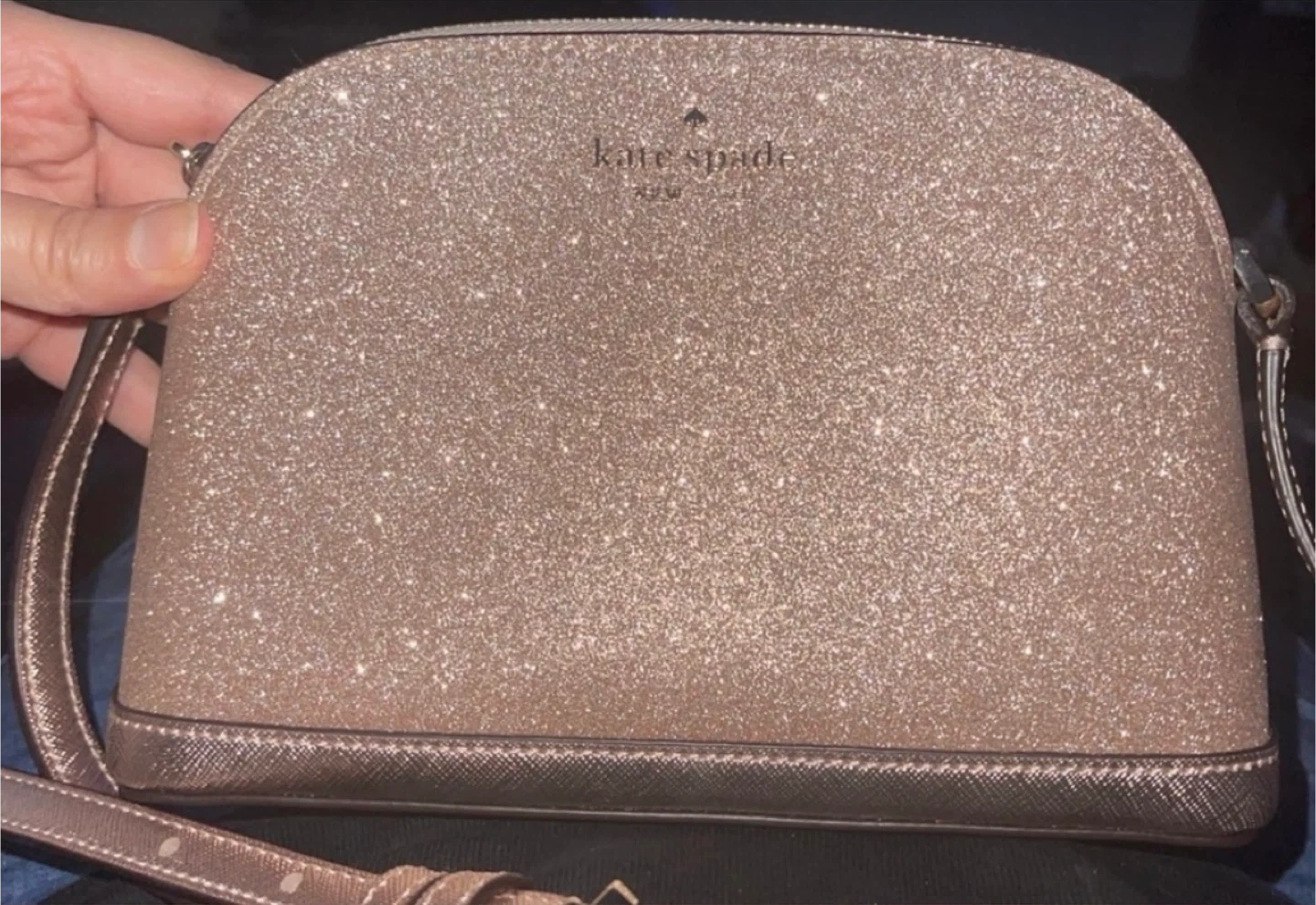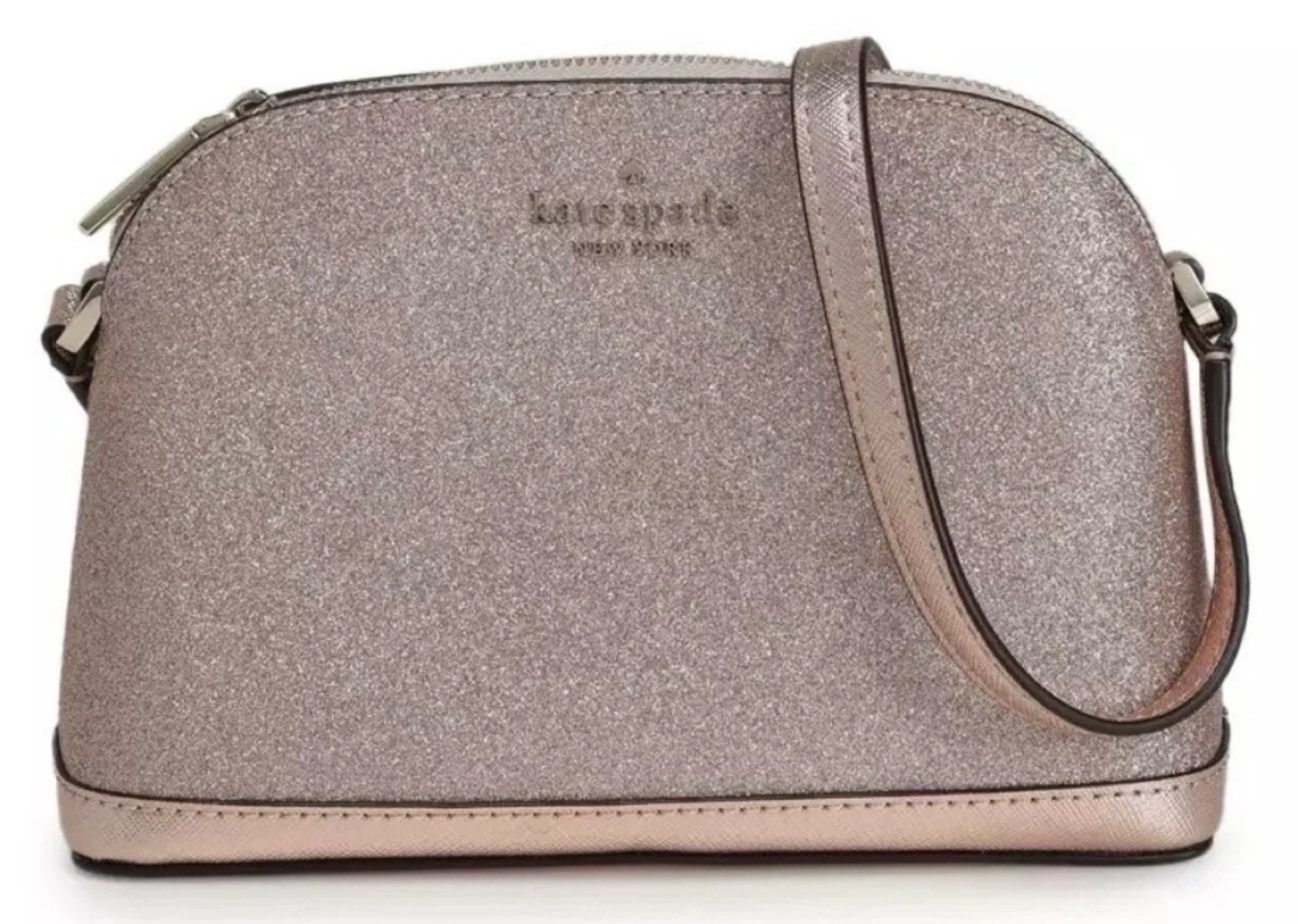 Kate Spade New York Rose Gold Tinsel Dome Sparkly Crossbody Bag