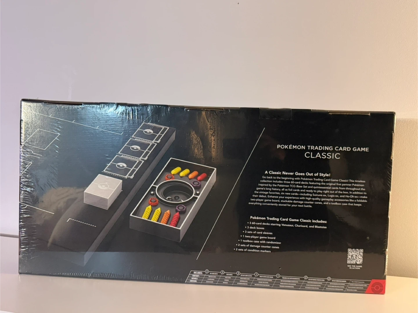 Factory sealed Pokémon TCG Classic set in excellent sealed condition. Features premium classic presentation with included game board, accessories, and 3 decks starring Venusaur, Charizard, and Blastoise. Outer wrap remains sealed; see photos for condition. Perfect for display, collecting, or gifting.