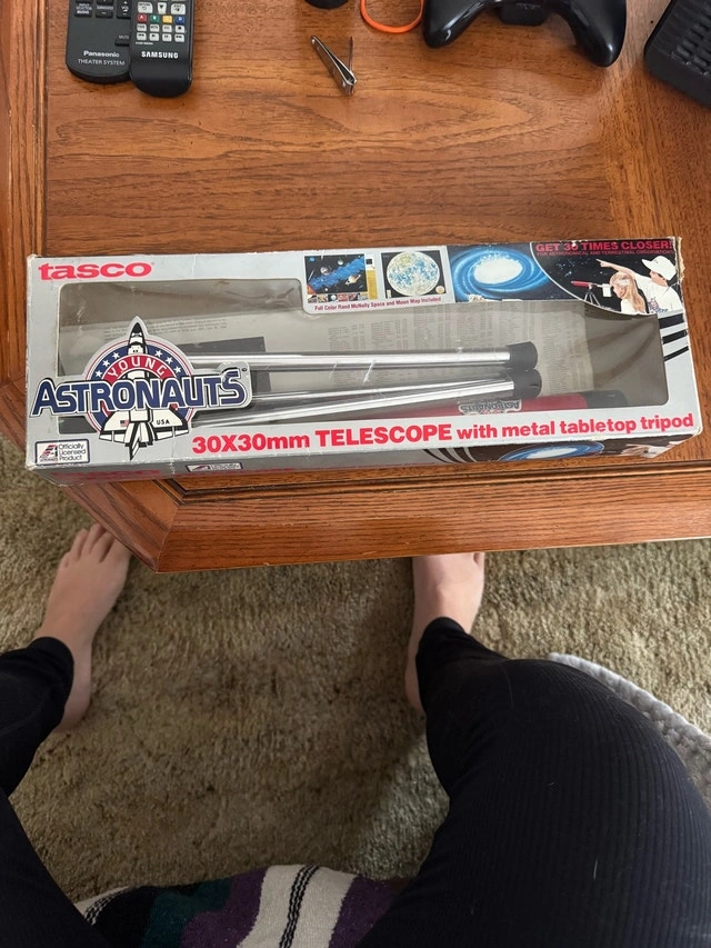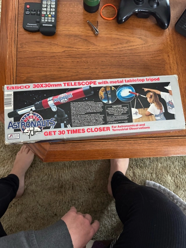 Buy & SellVintage 1980's Children's Telescope with TripodVintage 1980's Children's Telescope with Tripod$30Vintage 1980’s children’s telescope with tripod. Feel free to message if you have any questions!WHERE TO MEETCheck LocationView MapSELLERverifiedElaineMadden650 reviews0 chats·0 favorites·4 viewsSEND CHAT TO SELLERHi Elaine! I’m interested in your listing.Hi Elaine! I’m interested in your listing.Get the Karrot app to chatSign In to chat