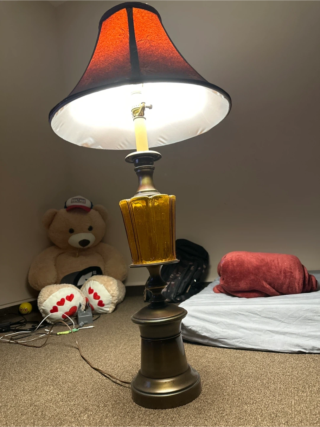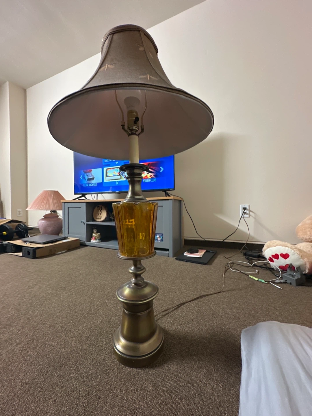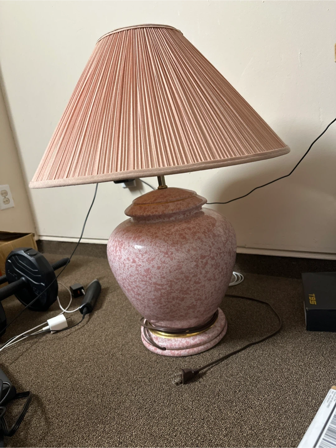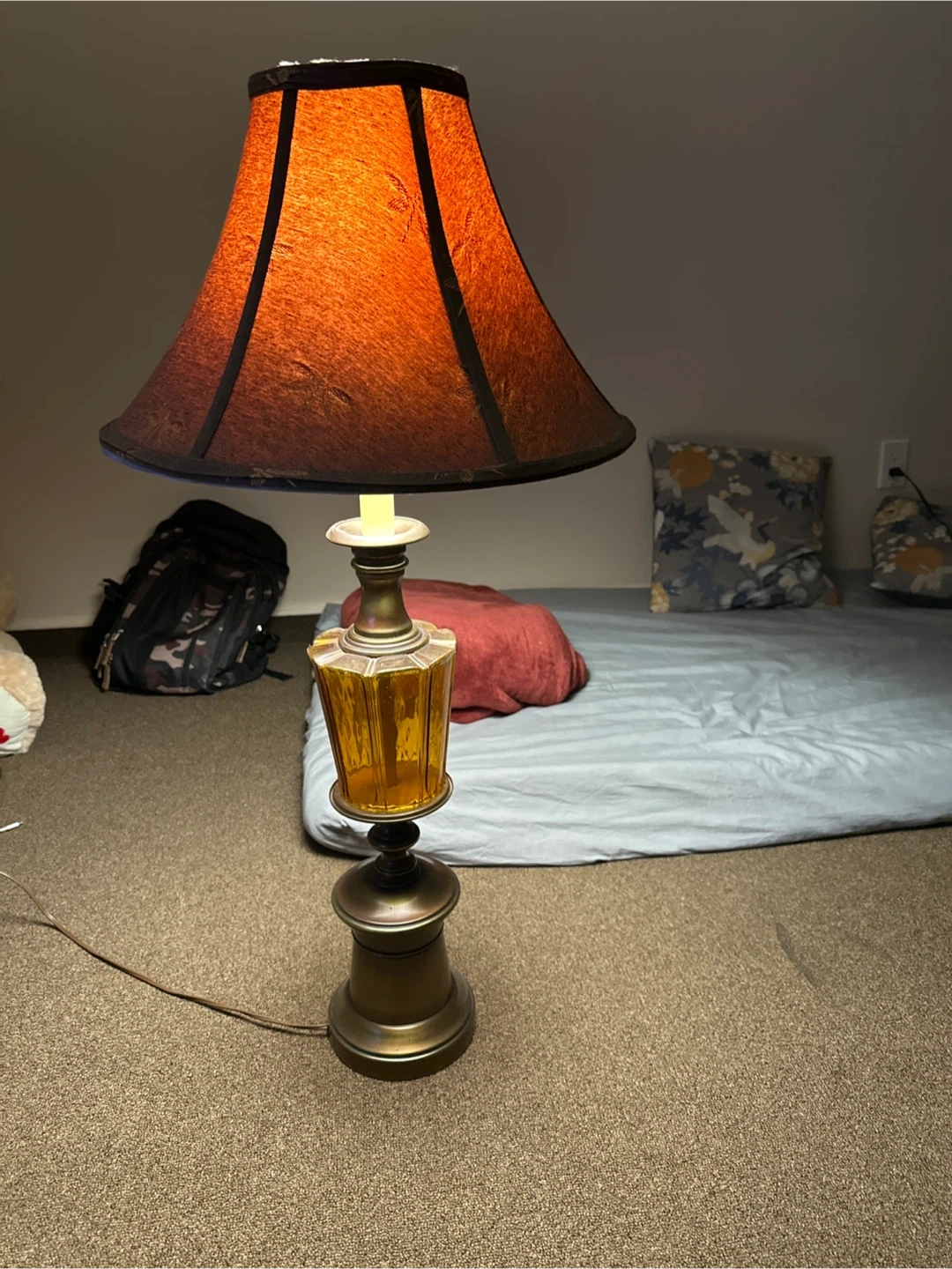 Selling a vintage-style table lamp with a unique design. The lamp features a gold-toned base and a patterned lampshade. It's a great addition to any room!