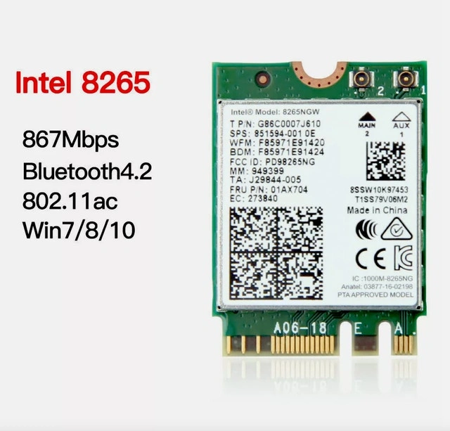 Intel 8265 Wireless-AC 8265NGW NGFF 867M Wifi Bluetooth 4.2 Card in very good working condition. Selling price: $15. Cash and cashless payments accepted.