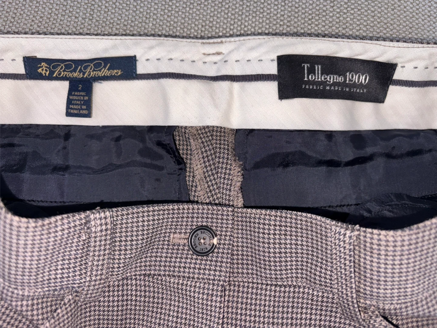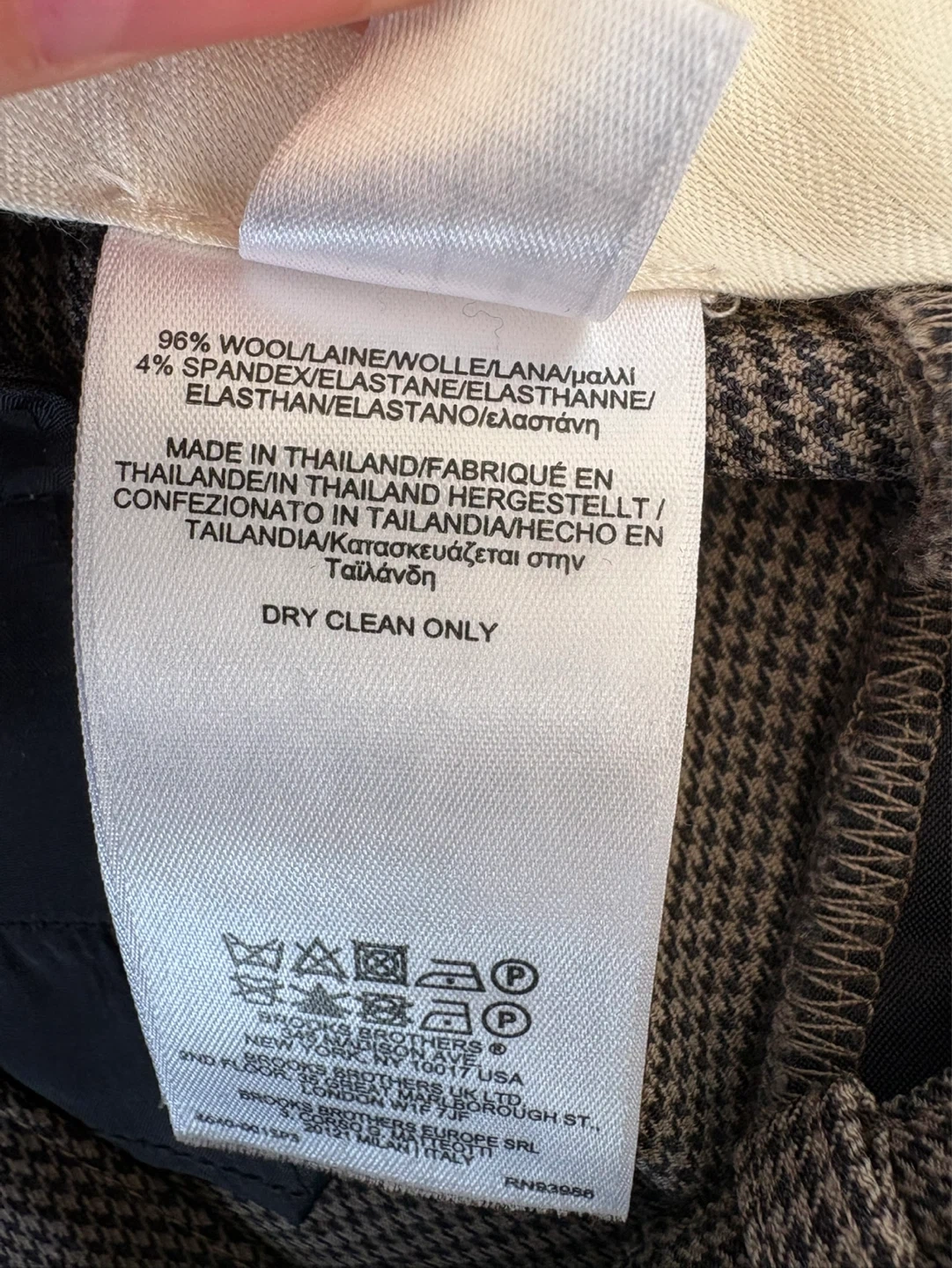 Brooks Brothers tailored trousers. Classic houndstooth pattern. 96% wool, 4% spandex, Italian fabric. Polished professional look. Pristine condition.