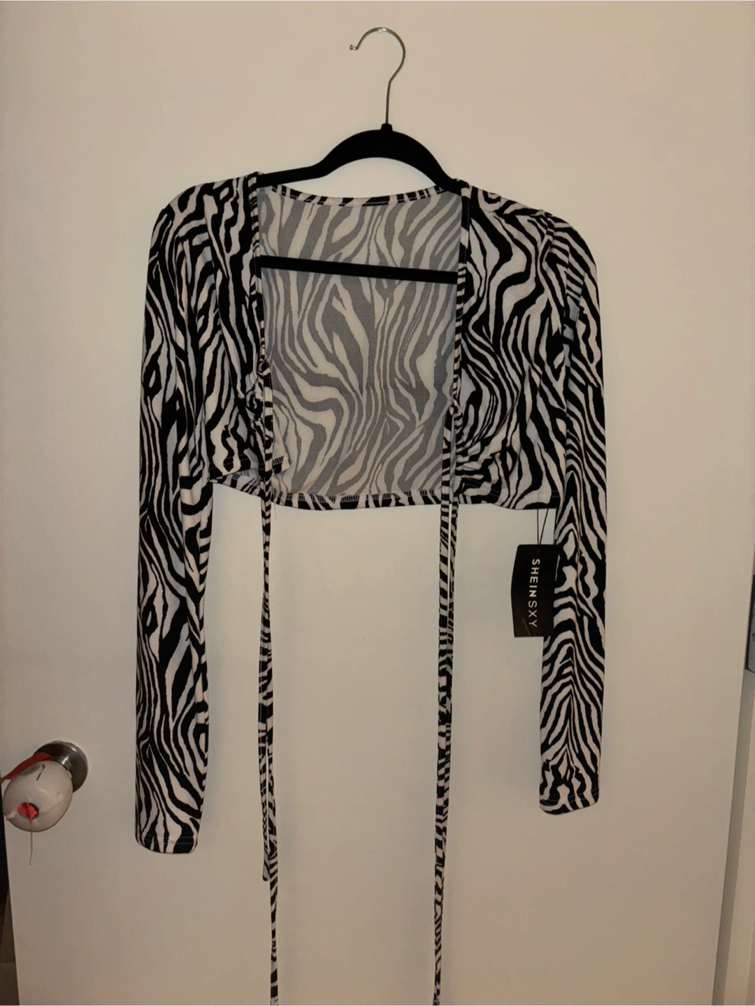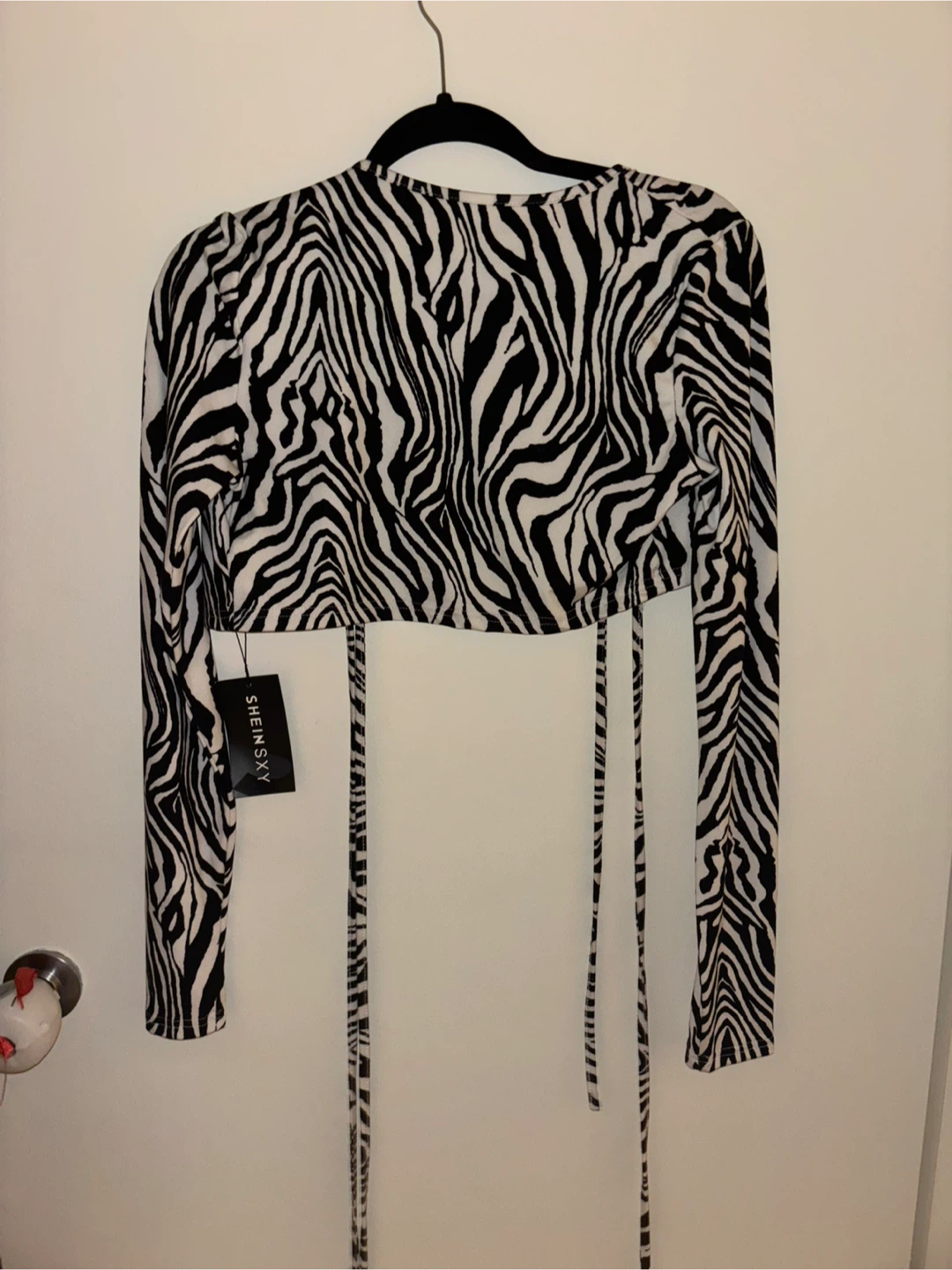 Buy & SellSHEIN Zebra Print Tie Front Crop TopSHEIN Zebra Print Tie Front Crop Top$4SHEIN zebra print crop top with long sleeves. Features a tie front closure and a bold black and white pattern. Size M.ConditionNewSizeMBrandSHEINWHERE TO MEETIn front of urgent careView MapSELLERverifiedAlyHell's Kitchen26416 reviews0 chats·0 favorites·17 viewsSEND CHAT TO SELLERHi Aly! I’m interested in your listing.Hi Aly! I’m interested in your listing.Get the Karrot app to chatSign In to chat