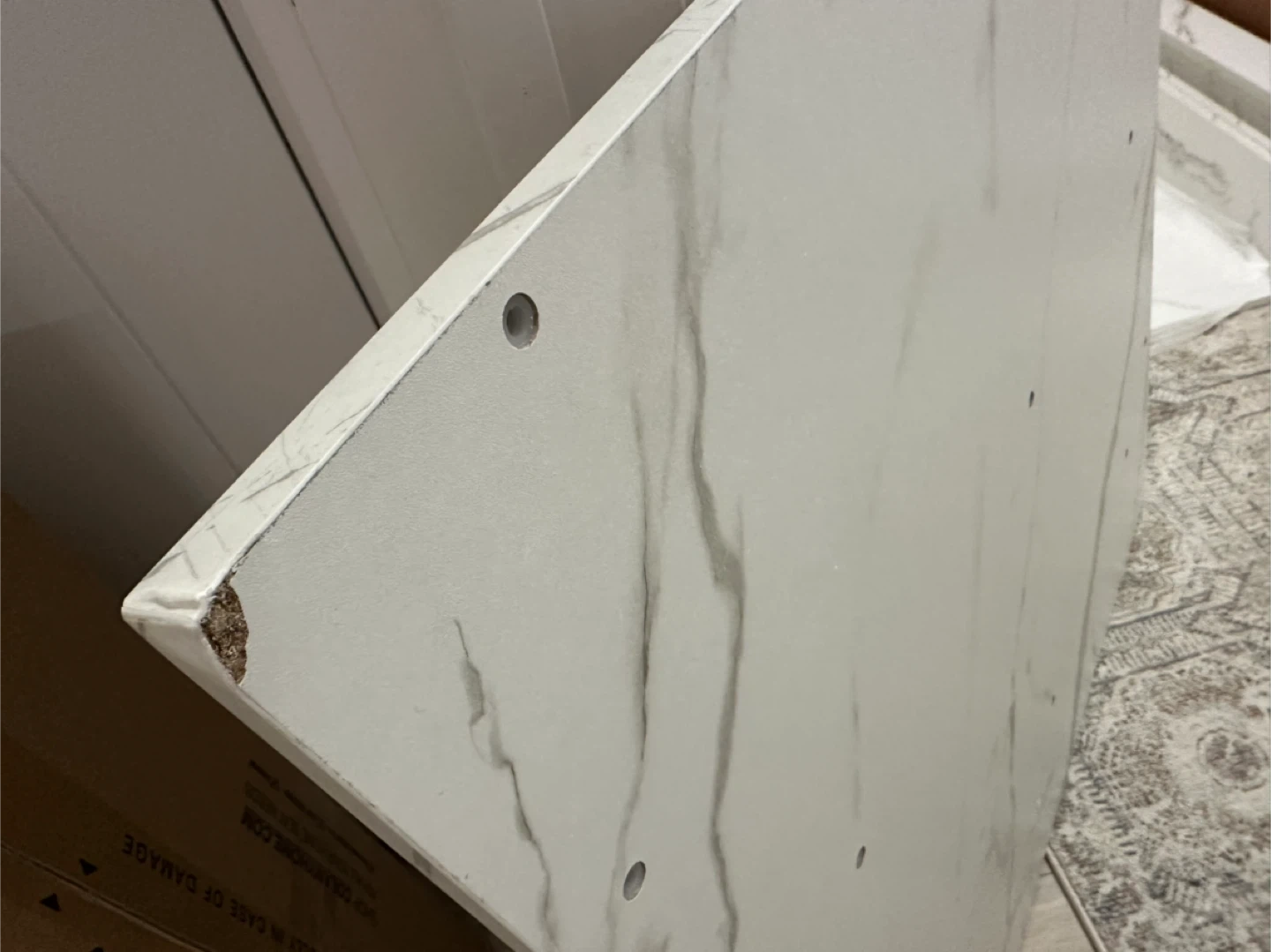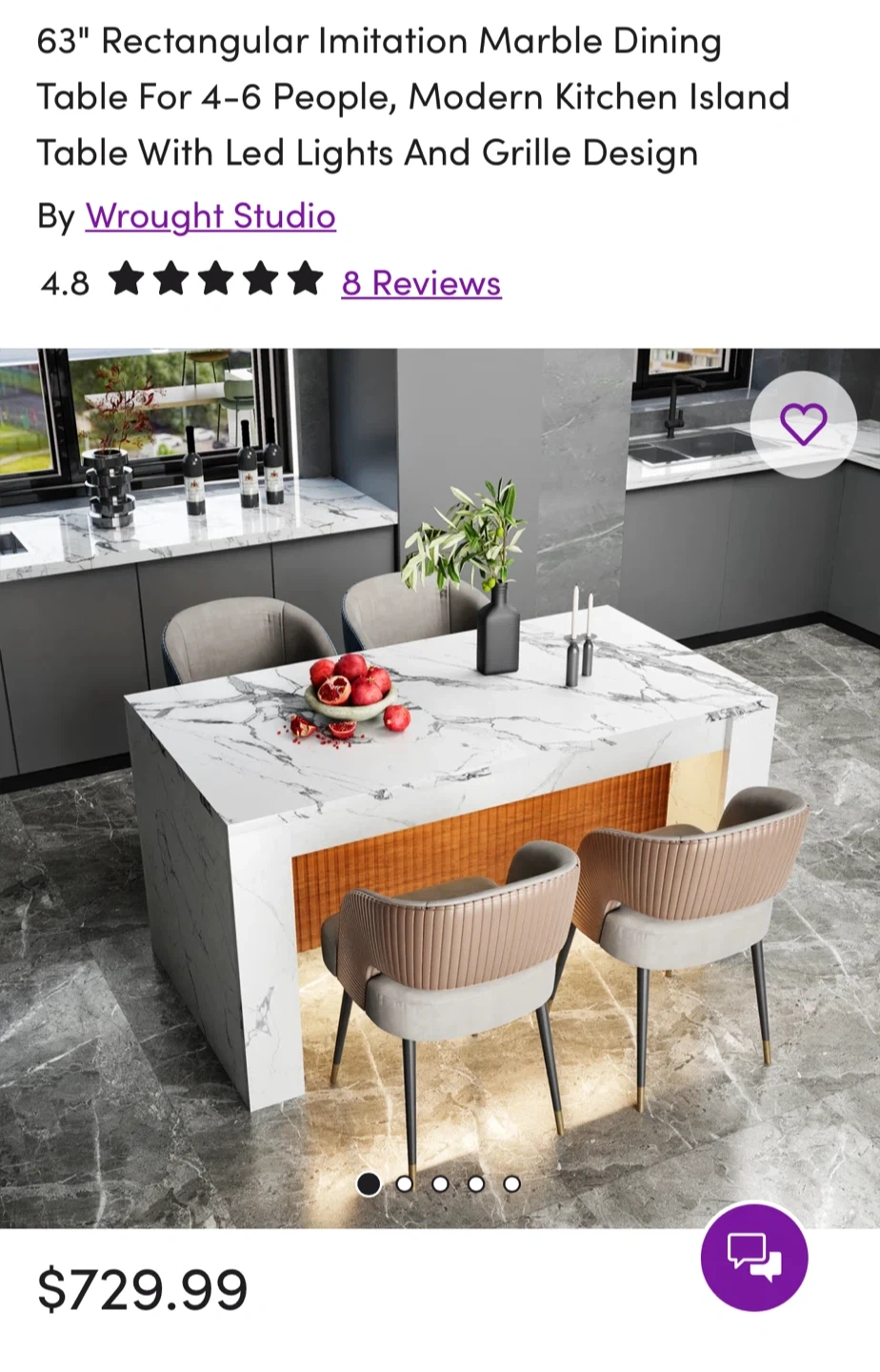 5Beautiful island table originally ordered from Wayfair. The table is new and unassembled, but two parts have minor cosmetic damage. The damaged areas are on the sides that face downward once the table is assembled they won’t be visible or affect stability. Great deal if you’ve been wanting a nice kitchen island without paying full Wayfair price!