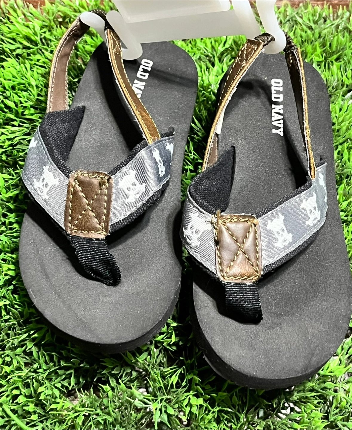 New Old Navy flip flops, white skull pattern on grey fabric, never worn. Boys size 8/9 (no size label on shoe, shoes size was determined based on other shoes within the same size). $5 Located in Mayland Heights, Calgary (NE) First come, first served No holds without e-deposit No delivery Prices are firm Pet friendly home If listing is up, item available