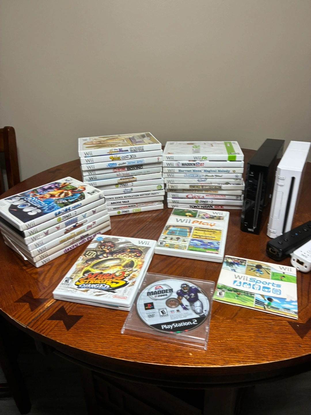 17Selling a Nintendo Wii console with games! Includes both a black and a white console, along with two Wii remotes. There are a bunch of games included as well, like Wii Sports and Wii Play. Perfect for some family fun! SOLD ITEMS!!!! -white Wii system -Wii play -Wii sports