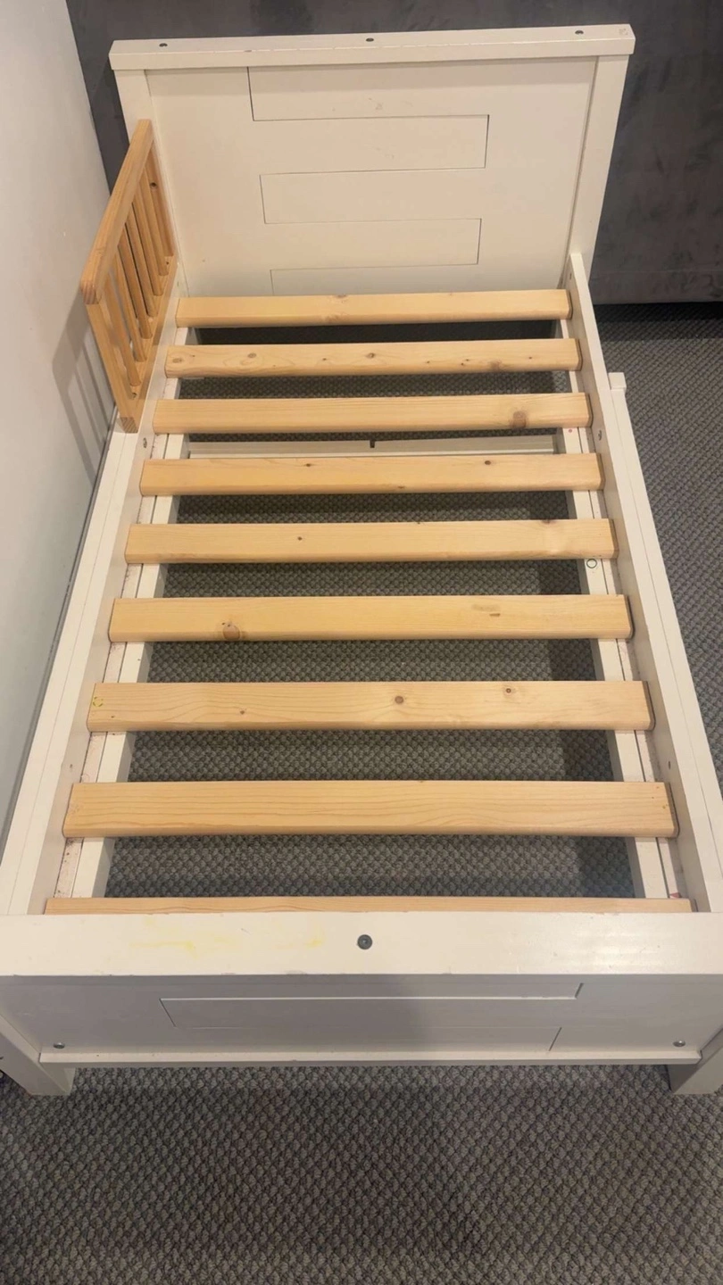 Selling a gently used IKEA Gulliver crib in white! It's in great condition and ready for a new little one. This crib is sturdy and converts to a toddler bed. Perfect for creating a safe and cozy sleep space for your baby