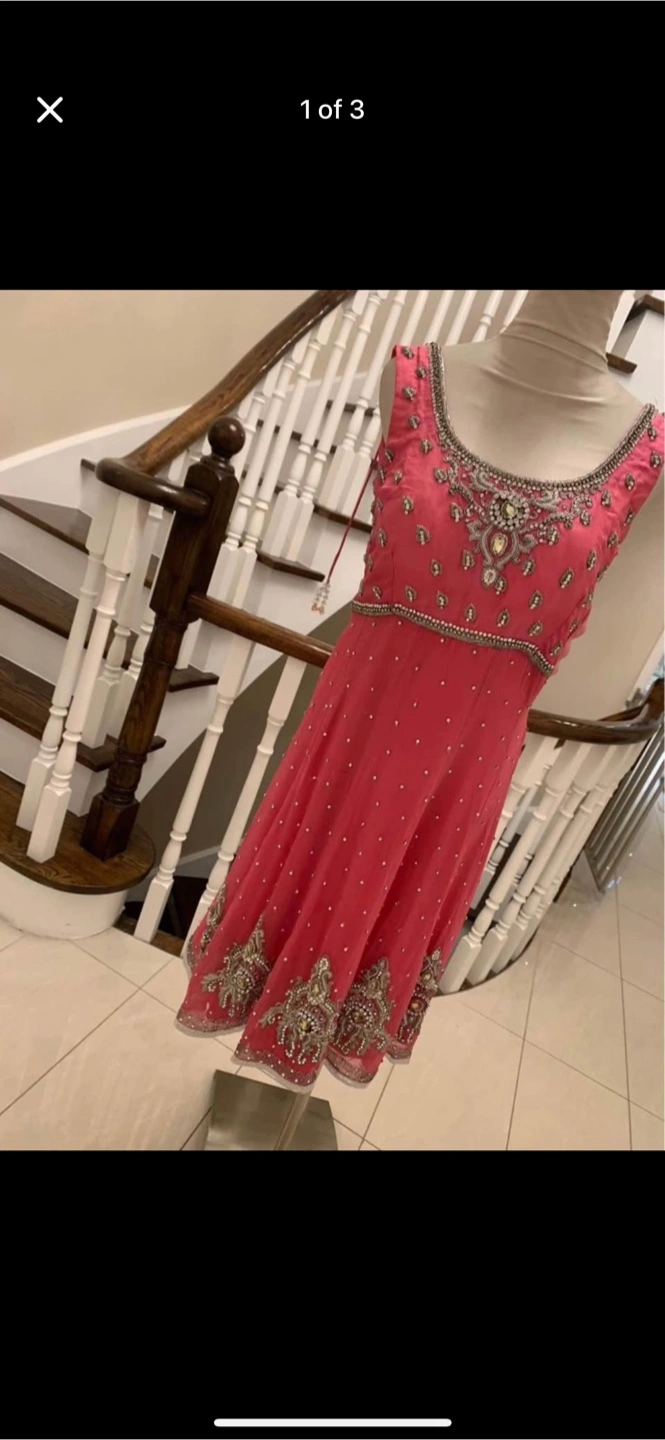 Beautiful pink Indian dress with silver embroidery detailing. It's in great condition and perfect for a special occasion!