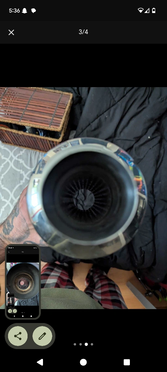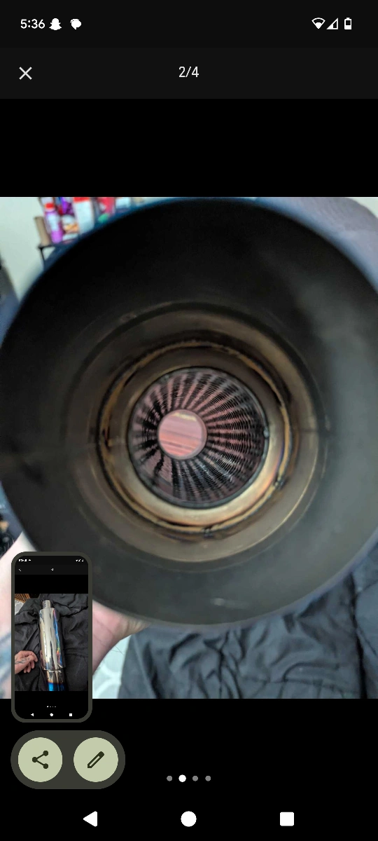 Selling a car muffler exhaust tip. It has a blue and silver finish. Please take a look at the pictures to see the condition