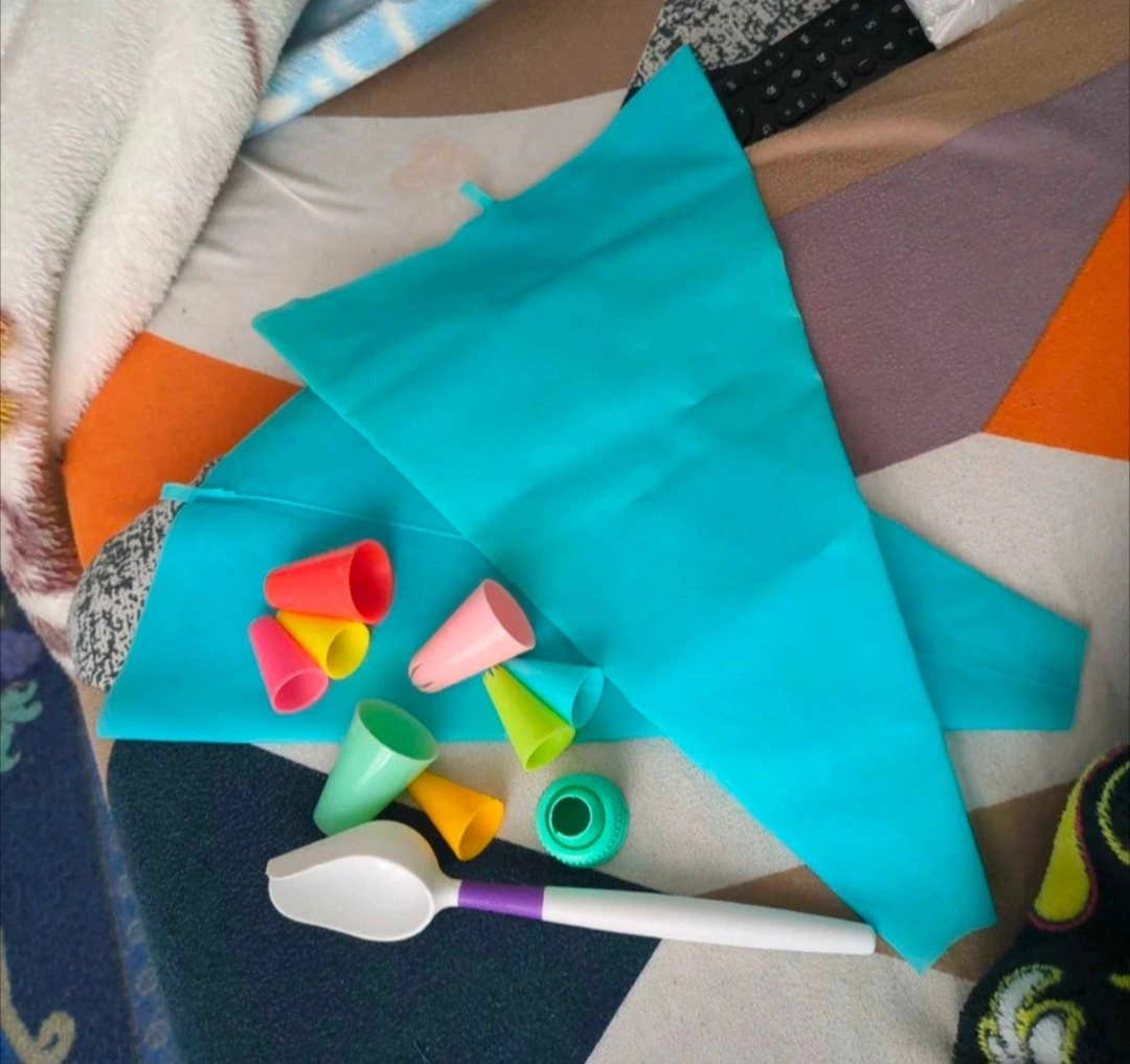 Get ready to bake! This cake decorating kit includes reusable piping bags, various decorating tips, and a spatula. Perfect for adding those finishing touches to your baked goods!