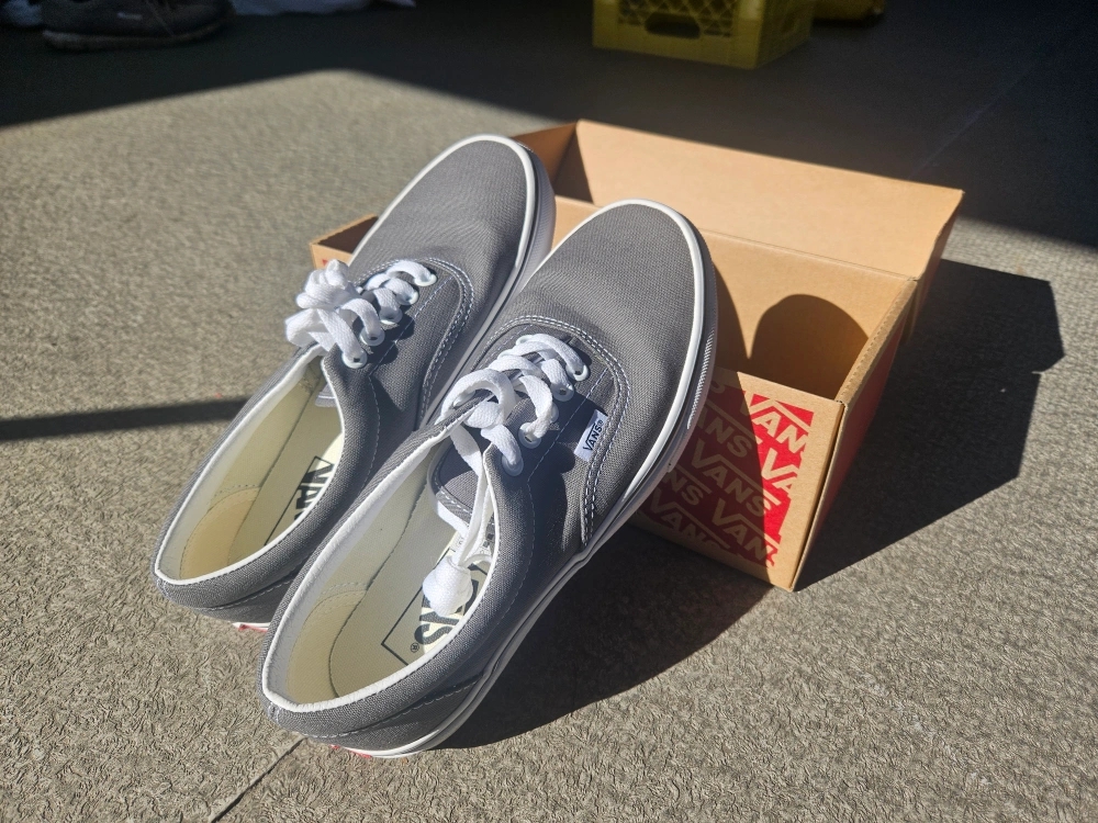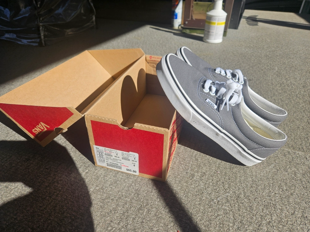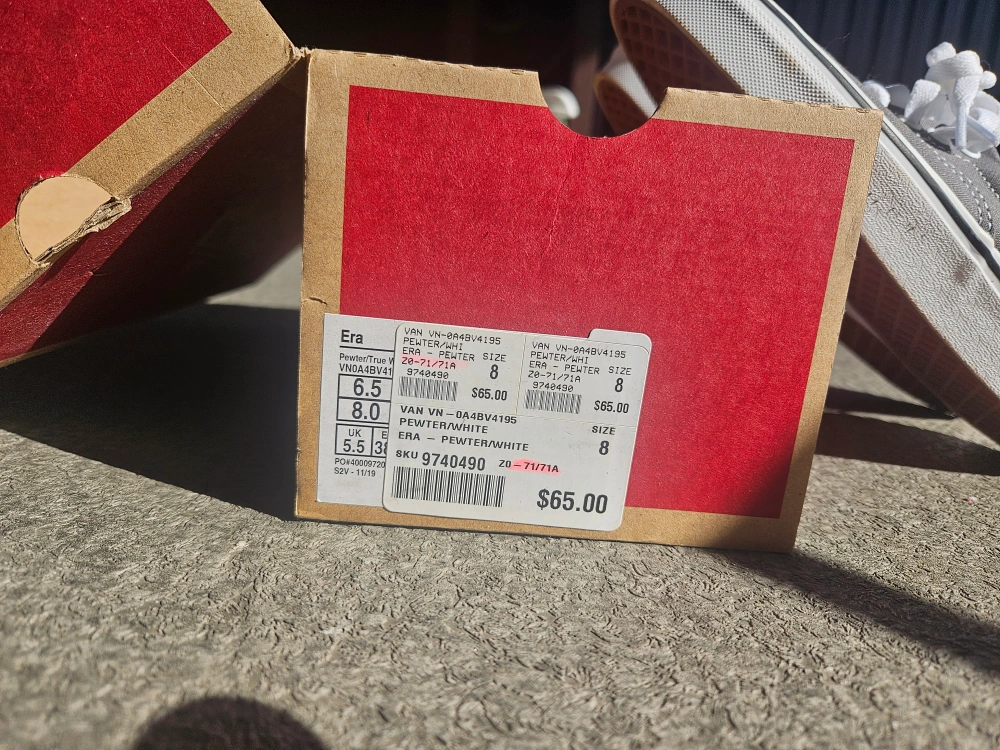 Selling a pair of Vans shoes in pewter/white, size 8! They come with the original box. These classic sneakers are ready for a new home! No longer my style.