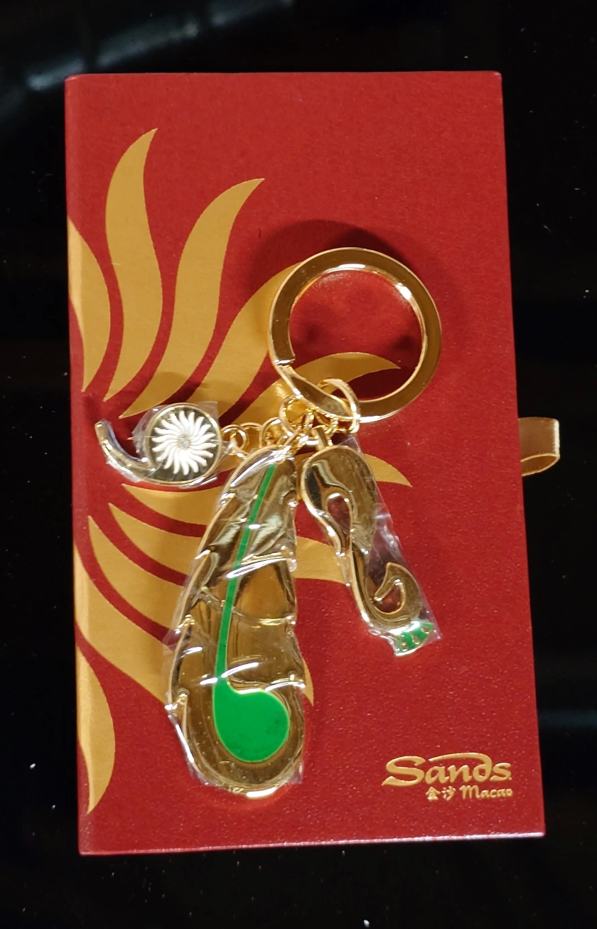 Brand new Sands Macao keychain that's still in its original box! It's a lovely gold colour and would make a great souvenir or gift for someone who loves visiting Macao. Pickup only.