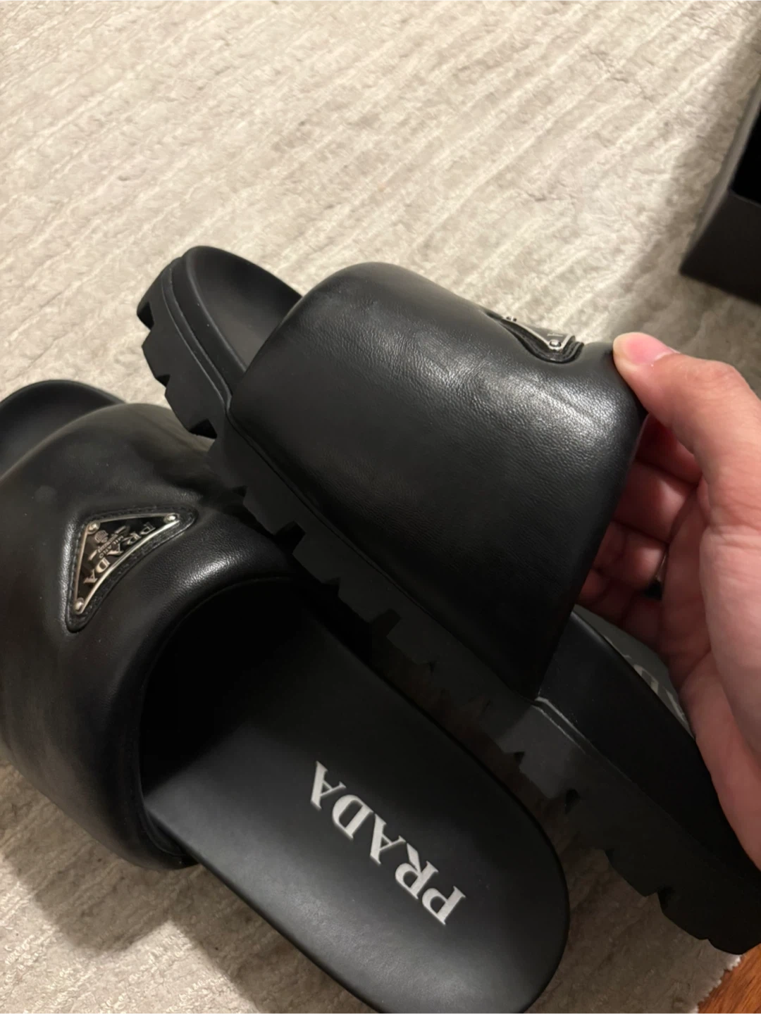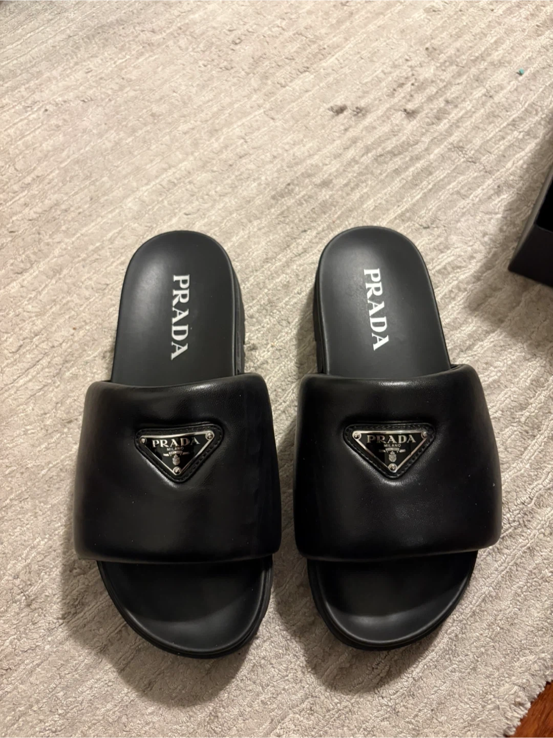 Selling a pair of Prada black padded slide sandals. They are in good condition and come with the box and dustbag. Got from Holt Renfrew. Rarely used.