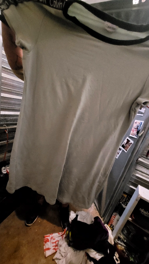 Selling a comfy Calvin Klein sleep dress in a light grey colour! It features a black trim around the neck. Perfect for lounging around the house