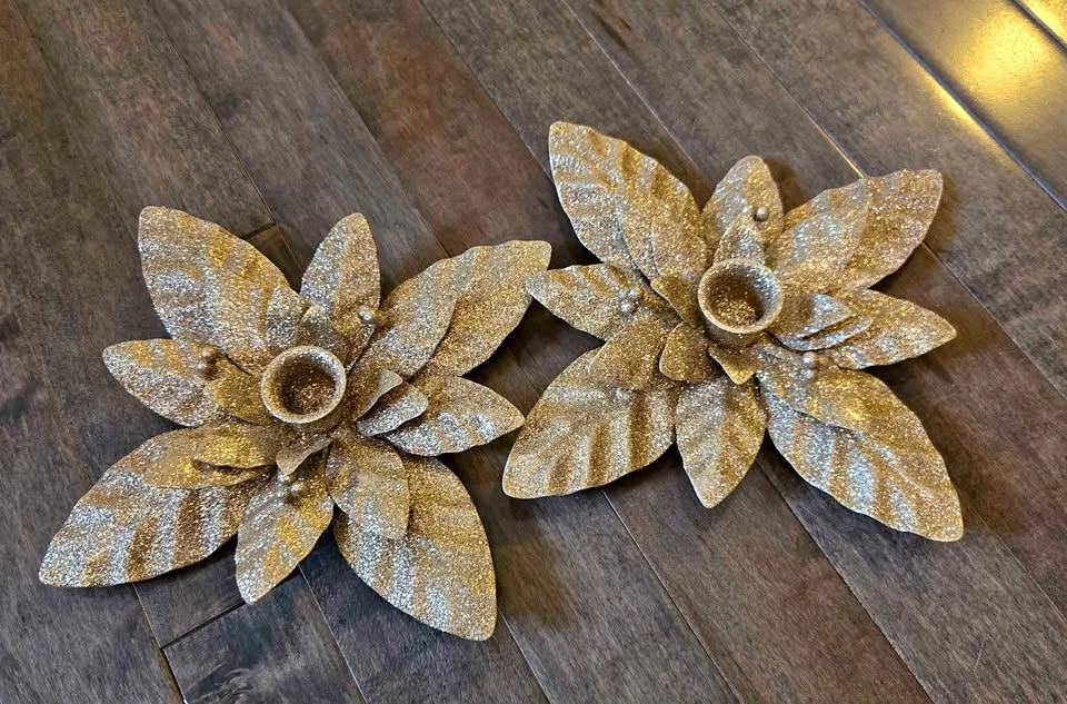 Buy & SellGold Poinsettia Tapered Candle Holder Set of 2Gold Poinsettia Tapered Candle Holder Set of 2$15New in Box. Gold Poinsettia Tapered Candle Holder Set of 2.WHERE TO MEETCheck LocationView MapSELLERATSavoline978 reviews0 chats·0 favorites·1 views