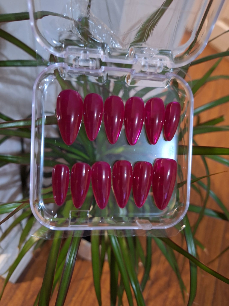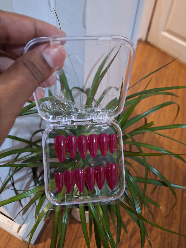 Selling a set of burgundy press-on nails! They are brand new and come in a clear case. Perfect for a quick and easy manicure at home