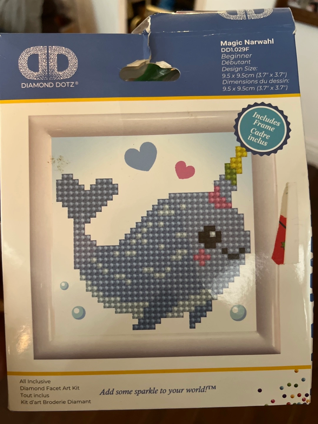 464Diamond Dotz Magic Narwahl beginner art kit. It's all inclusive and includes a frame! Design size is 9.5 x 9.5cm (3.7" x 3.7")