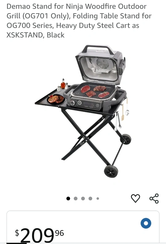 Selling a brand new Demao Stand for Ninja Woodfire Outdoor Grill (OG701 Only). This is a folding table stand for the OG700 series. It's a heavy-duty steel cart in black, model number XSKSTAND. It includes all the components and accessories, still sealed in the box