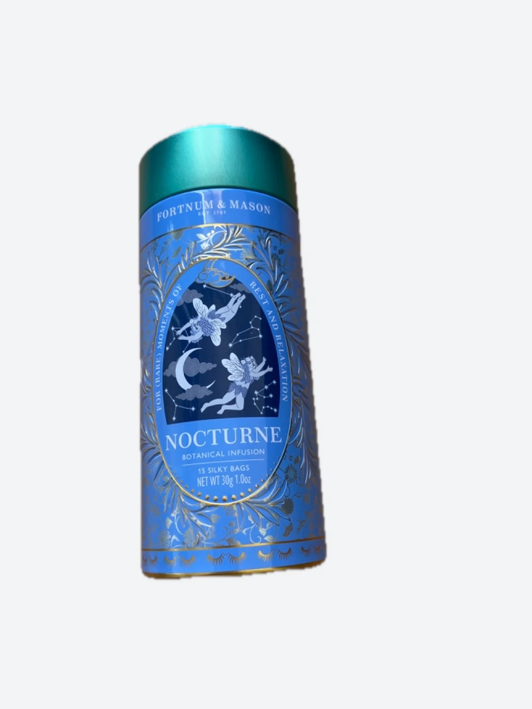 A can of Fortnum & Mason Nocturne Botanical Infusion Tea