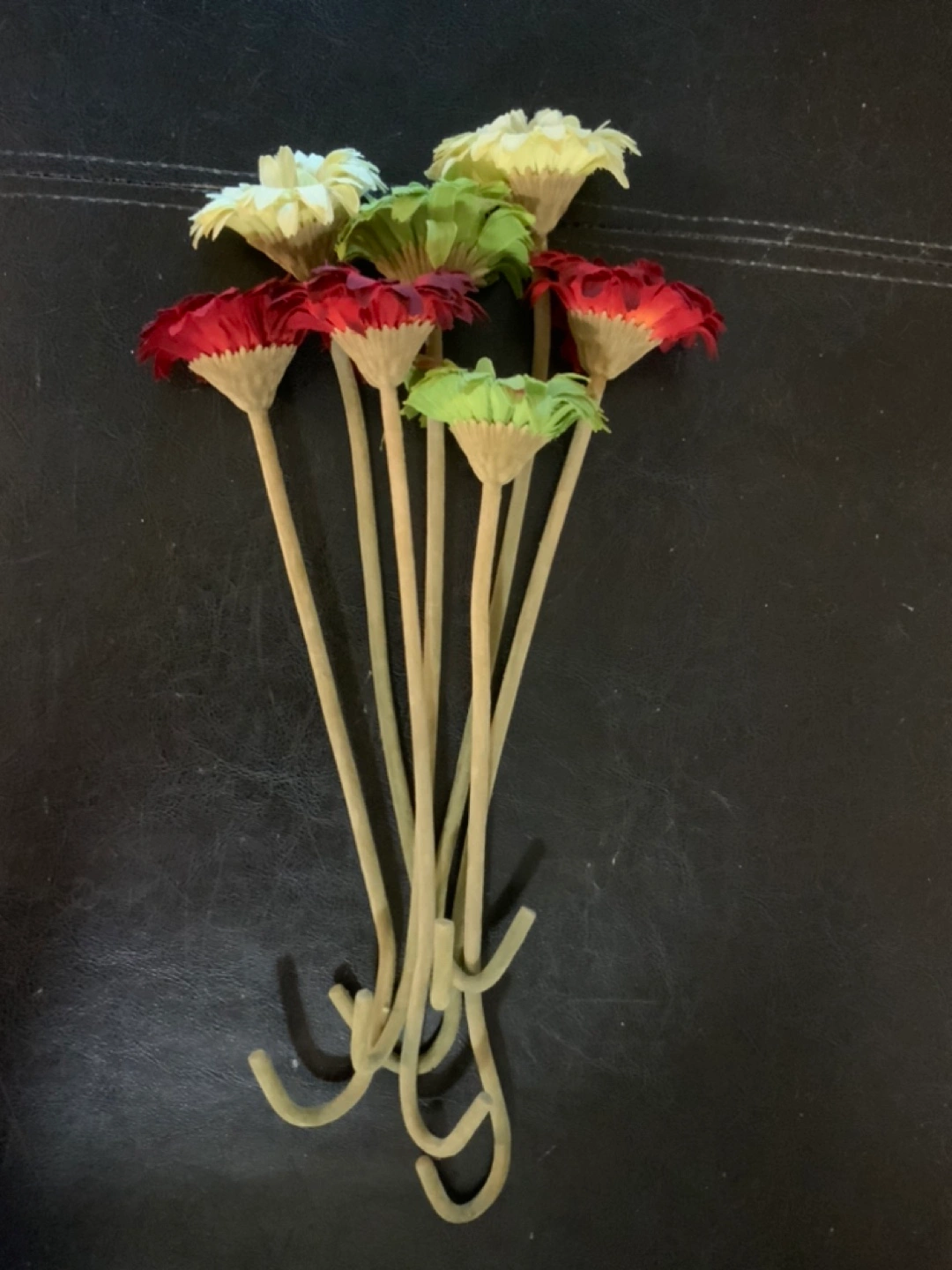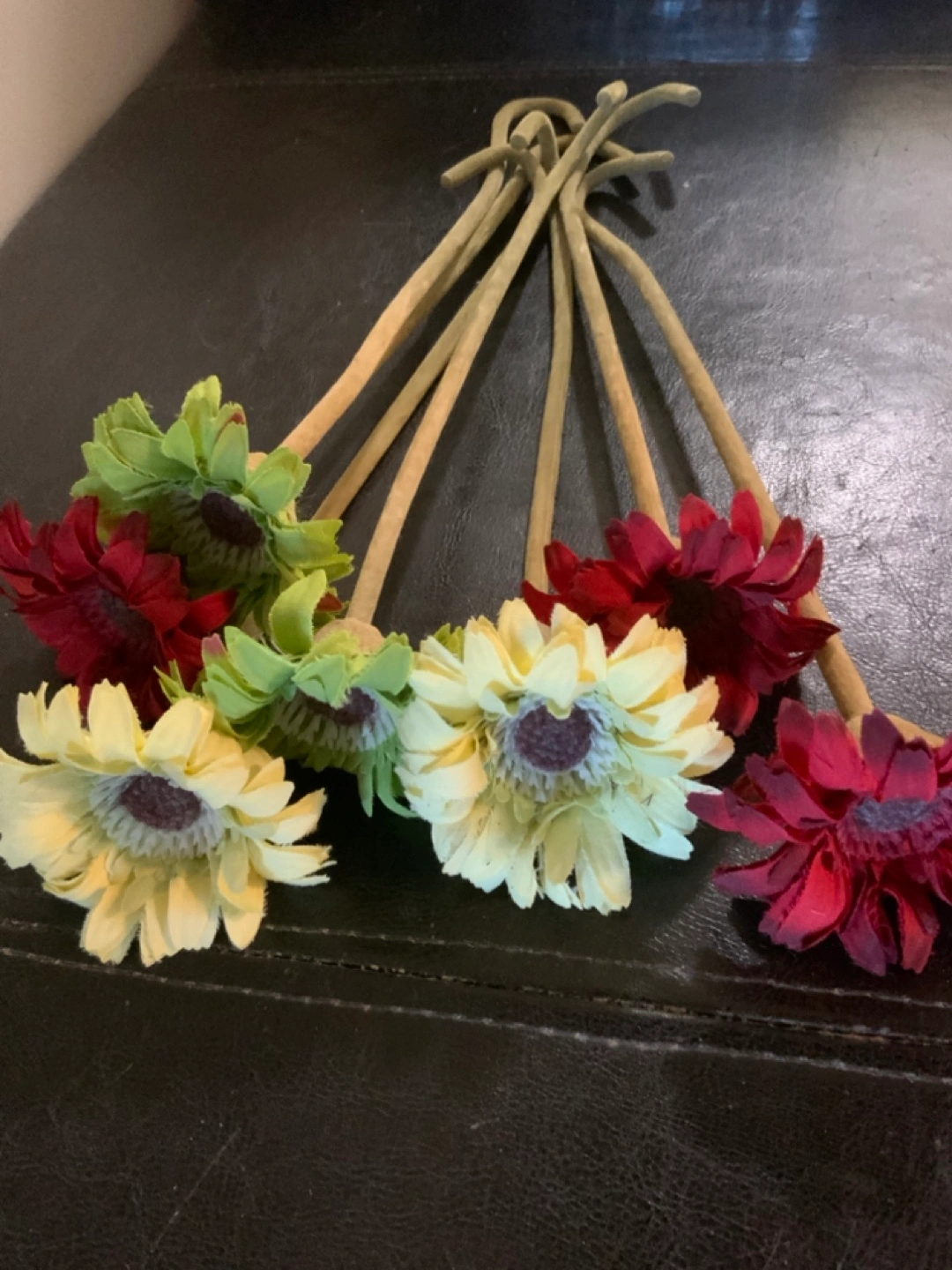 They're a mix of yellow, green, and maroon colours! These flowers have adjustable stems so they can be hung or wrapped around something as well πΌ