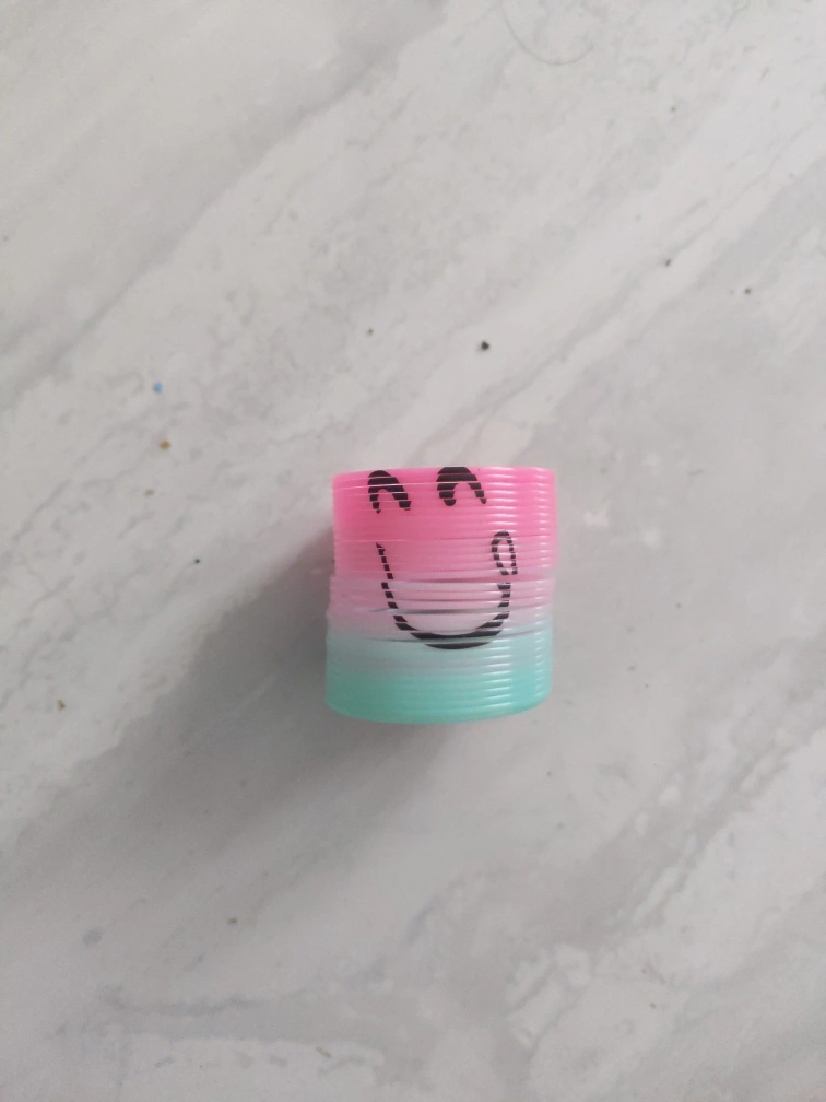 Selling a cute slinky toy with a smiley face design! It has a fun pink and blue colour gradient. Perfect for some nostalgic fun or a simple toy for kids