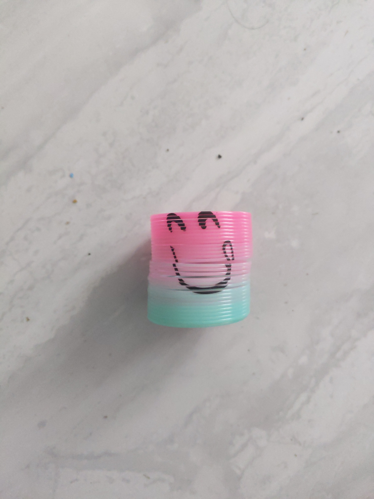 Selling a cute slinky toy with a smiley face design! It has a fun pink and blue colour gradient. Perfect for some nostalgic fun or a simple toy for kids