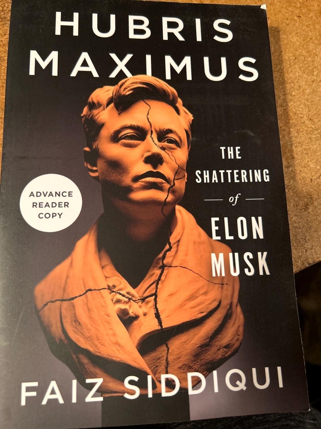 119Selling a copy of "Hubris Maximus: The Shattering of Elon Musk" by Faiz Siddiqui. It's an advance reader copy. It is a paperback edition. No damage to book Will accept cash or e transfer Will do contactless pickup