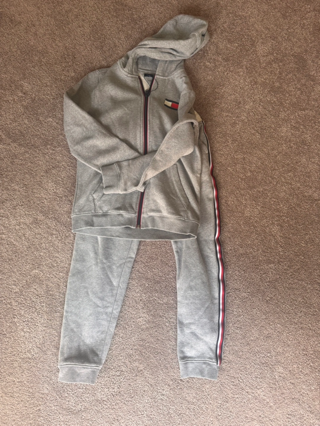 Tommy Hilfiger tracksuit in size L/G (12-14). This set includes both the hoodie and the pants, perfect for a comfy and stylish look!