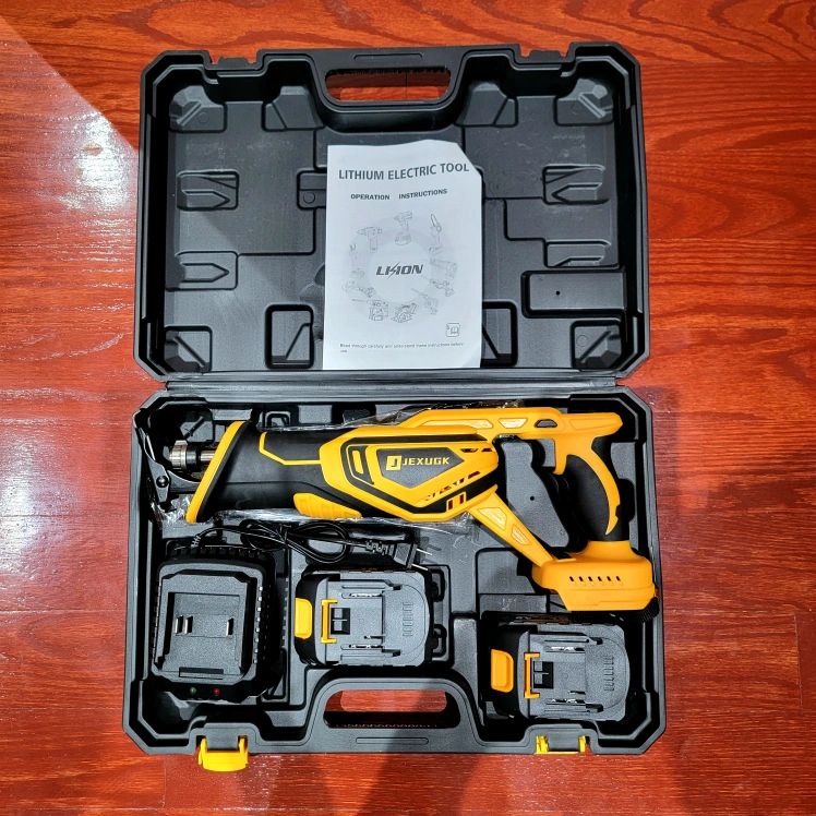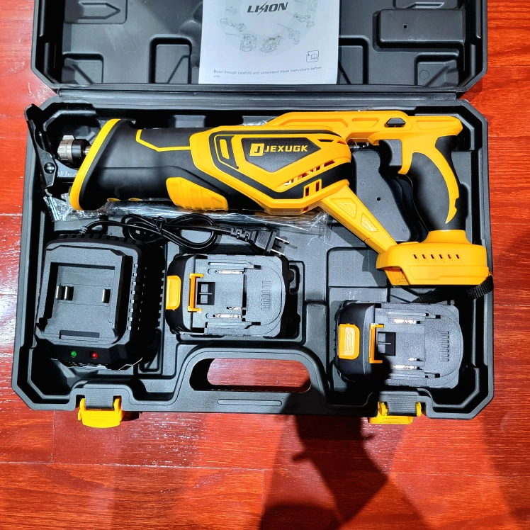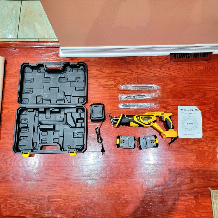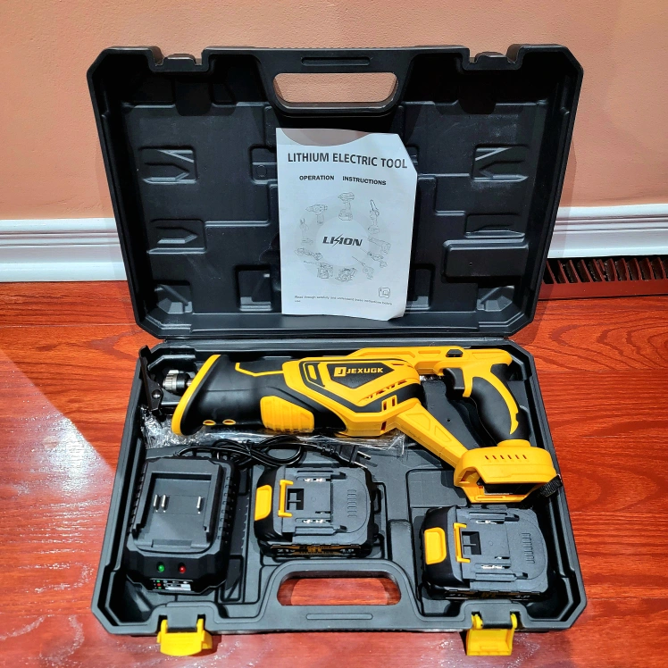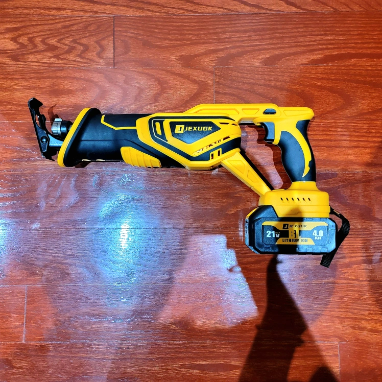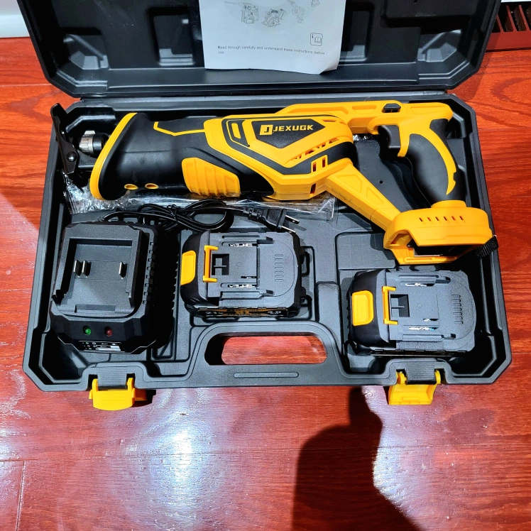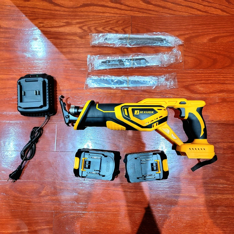 32Power through tough jobs with the JEXUGK Brushless Reciprocating Saw (Cordless). Compact, powerful, and easy to handle, this saw is perfect for cutting wood, metal, or plastic with efficiency. Designed with a brushless motor for longer life, stronger performance, and less maintenance, ideal for both DIY projects and professional use. MORE INFORMATION ABOUT THE SAW: Yellow color, carbon steel blade, battery powered (Rechargeable), 3500 SPM/RPM, 21V (DC) 4.0Ah battery, has auto-locking all-metal collet, 27mm stroke, can a depth up to 250mm, 84 Watts, 4 Amps, 90 degree cutting angle, ergonomic handle, keyless blade change, lightweight, spindle lock, 12 teeth blade, adjustable speed, fast cutting, fast charging, low noise, smooth running, has a security lock, adjustable angle, has a heat dissipation port. WHAT'S INCLUDED: (1) JEXUGK Reciprocating Saw, (2) 4.0Ah Li-Ion Battery Packs, (1) Rapid Charger, (12) Saw Blades (For wood, metal, pipes, plastic, etc), (1) Carrying Case, (1) User Manual.