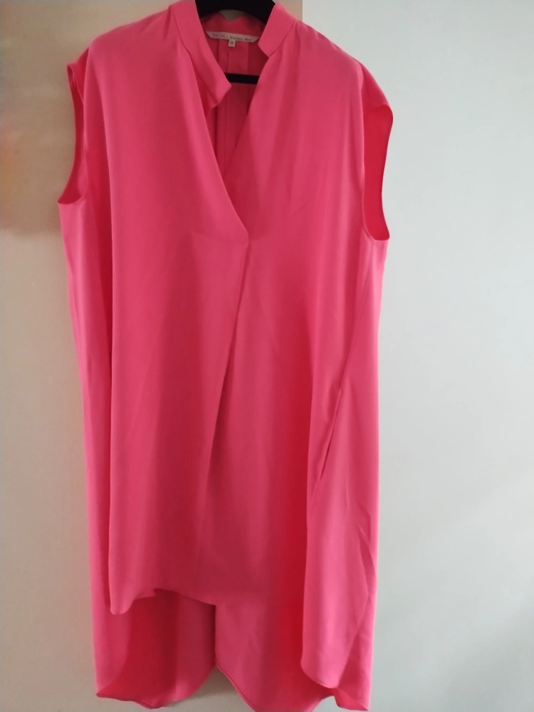 636Here's a Rachel Roy sleeveless Dress in a vibrant orangey - pink colour, with side pockets and tail edge the back. Size XXL and would be a great addition to your wardrobe